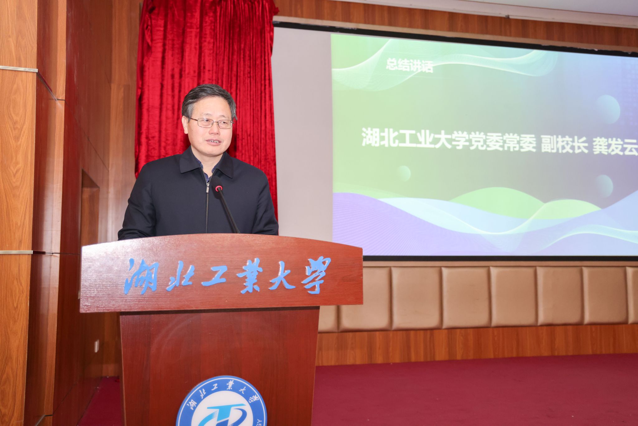 12月19日,第二届湖北工业大学短学期实践征文与演讲大赛冠军争夺赛暨颁奖典礼在博学堂举行。校党委常委、副校长龚发云出席评审会并作总结讲话。大赛邀请马克思主义学院教师、外国语学院教师、学院党委副书记、教学副院长、相关职能部门负责同志共39人作为评委参与评审。比赛与颁奖典礼由教务处副处长吕栋主持。