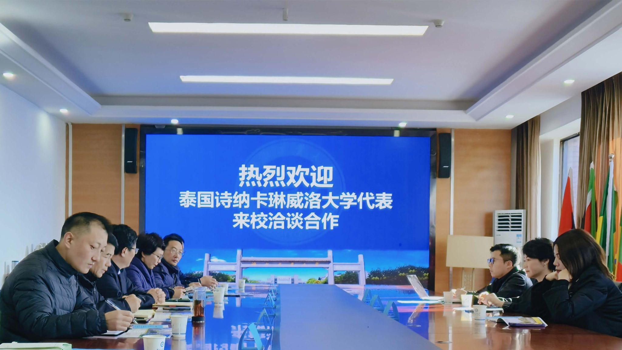 随后,社会资源处、继续教育学院、工程技术学院等单位负责人分别与泰国诗纳卡琳威洛大学代表进行交流。
