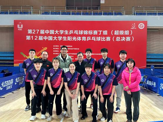2023年11月22日至26日,由中国大学生体育协会主办,成都市全国重点乒乓球运动学校、西南交通大学、郫都区文化体育和旅游局、成都市乒乓球运动中心共同承办的第27届中国大学生乒乓球锦标赛丁组(超级组)在西南交通大学犀浦校区体育馆隆重举行。