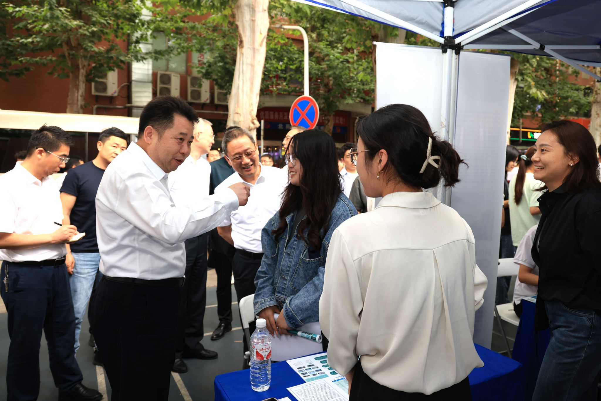 蔚盛斌先后来到湖北工业大学“百日冲刺”专场招聘会现场和武汉城市职业学院“匠之家”实训基地,与招聘企业、学校师生、创业团队亲切交流,详细了解学校人才培养、校企合作、产教融合、就业指导等情况并给予肯定。