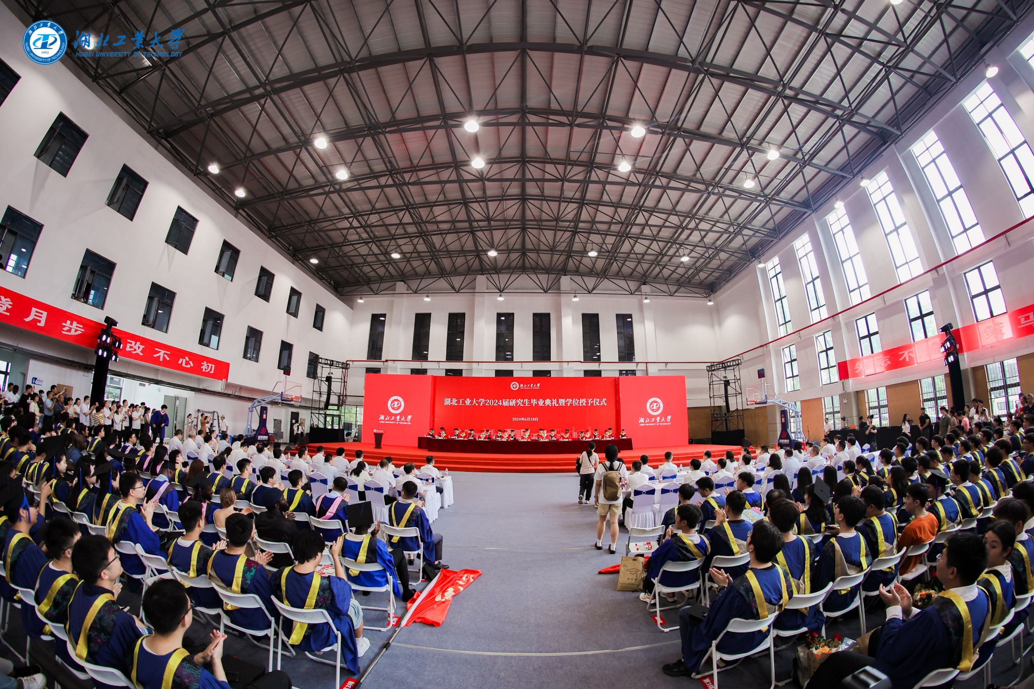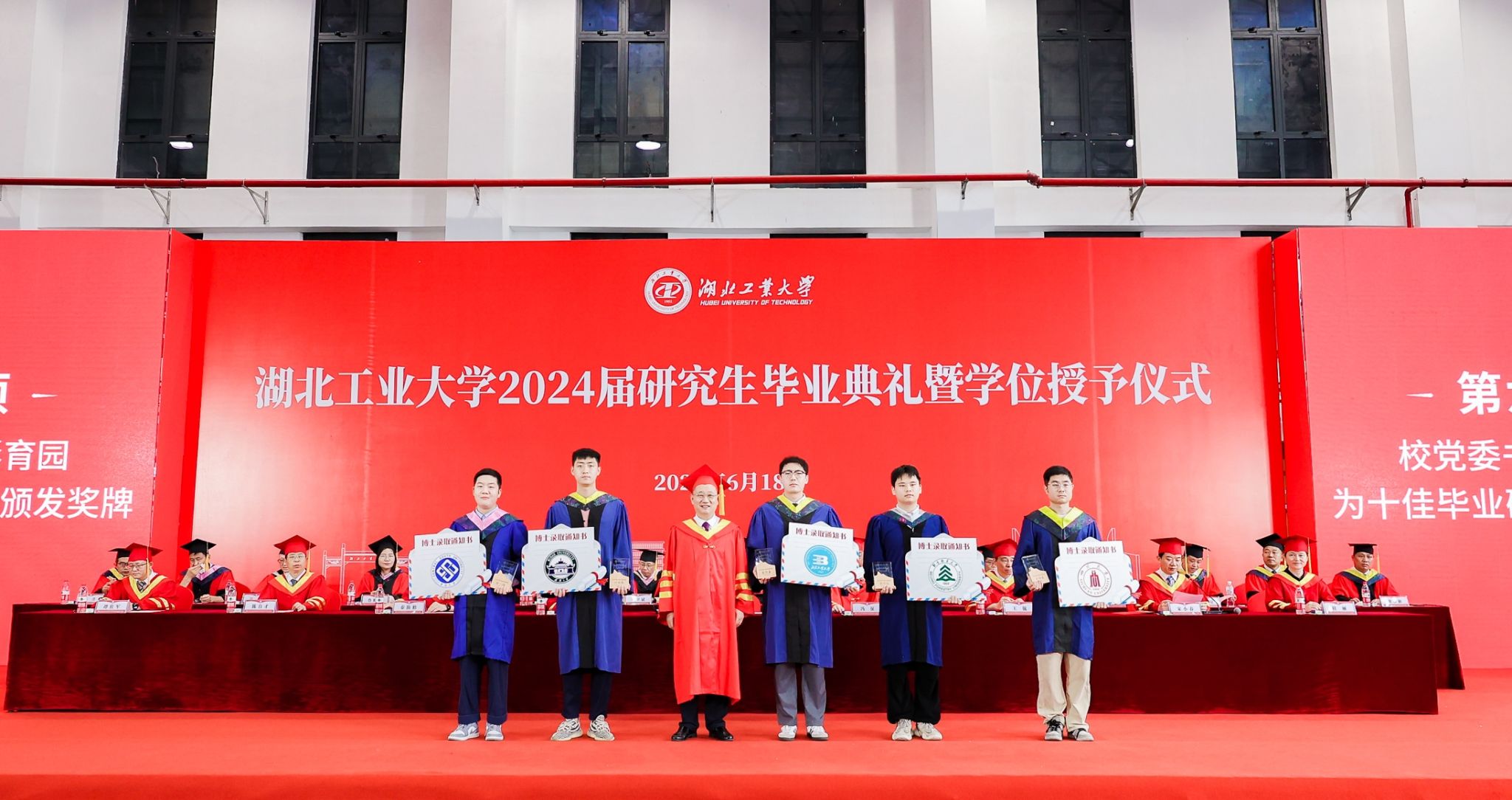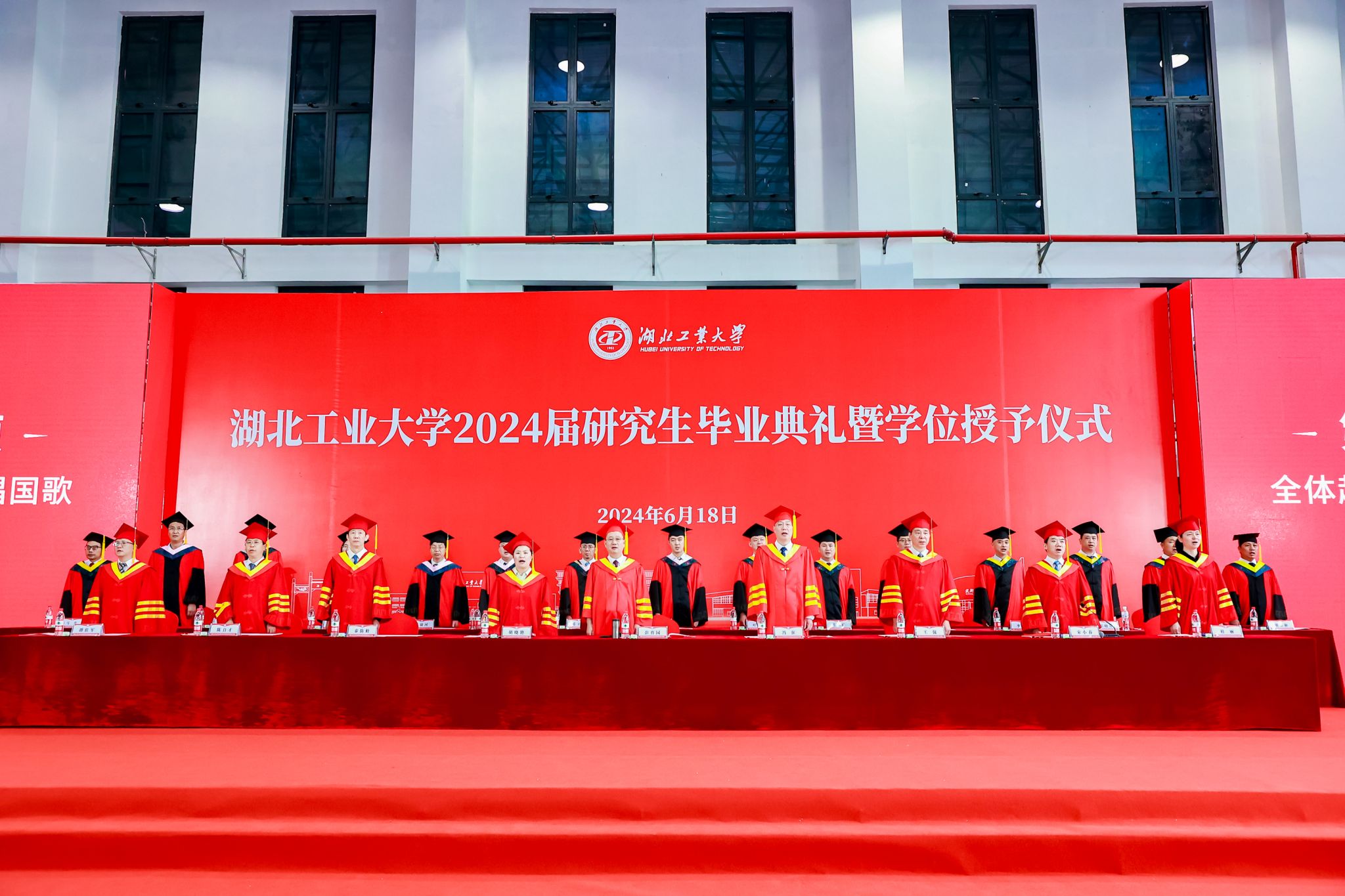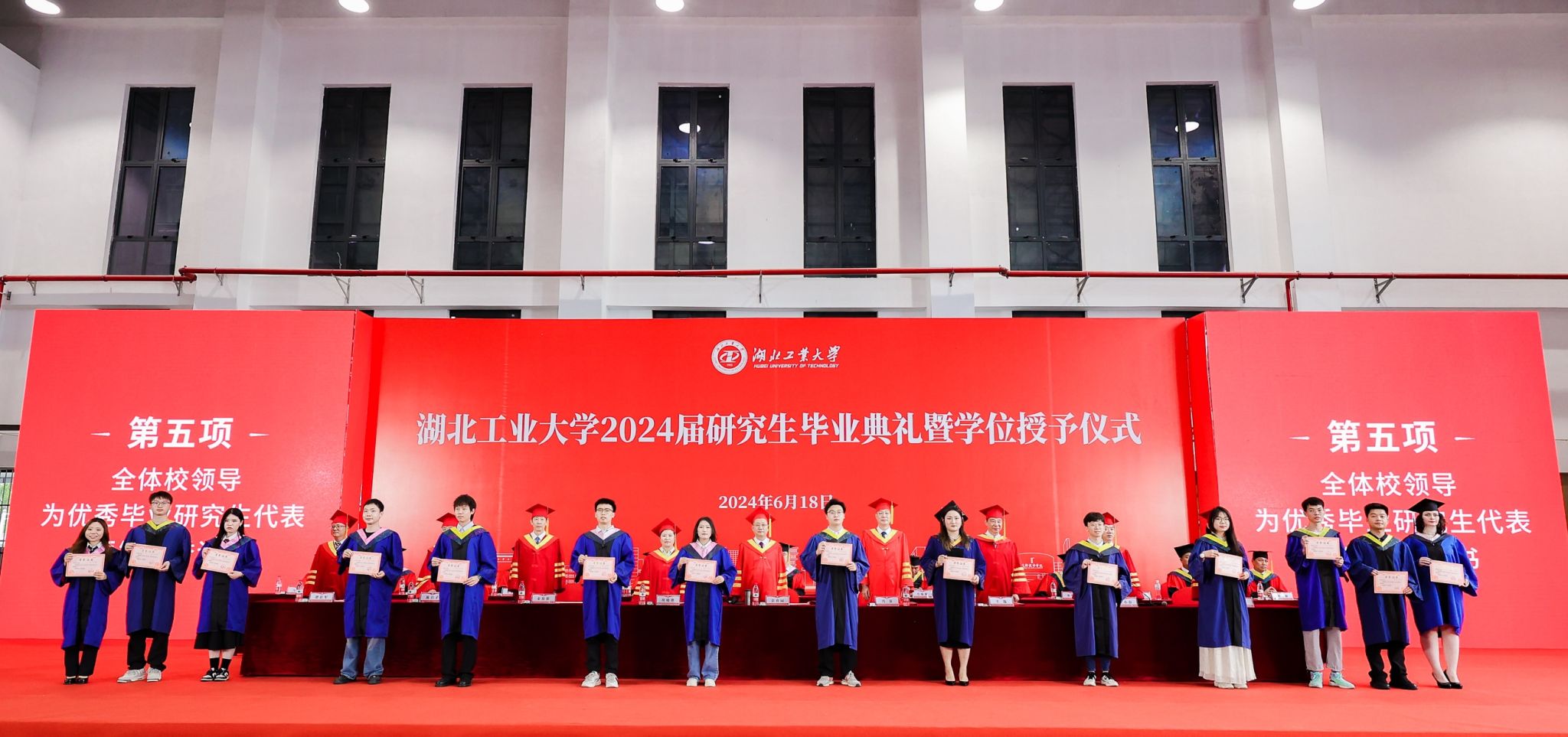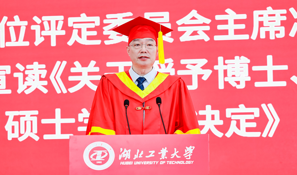 校学位评定委员会主席冯征宣读《关于授予博士、硕士学位的决定》。校党委常委、副校长王侃宣读《关于表彰湖北工业大学2024届优秀毕业研究生的决定》。校党委副书记胡晓艳宣读《关于表彰湖北工业大学2024届“十佳毕业研究生”的决定》。