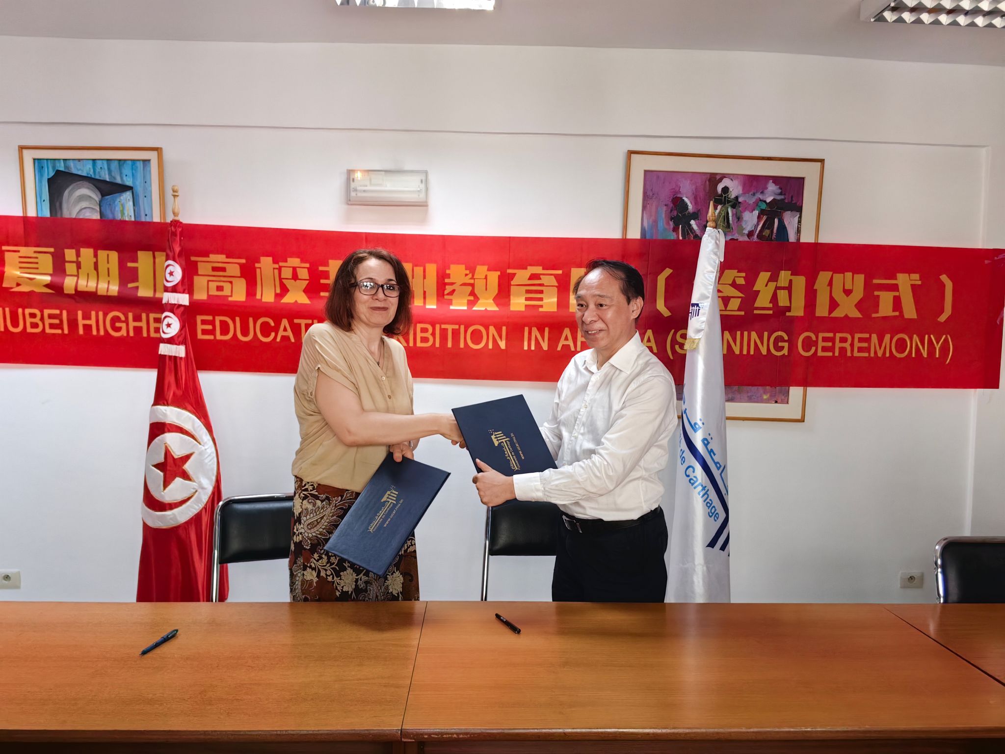 7月3日,代表团赴突尼斯迦太基大学交流,王侃向参加本次座谈会的蒙吉副校长介绍了“留学湖工”有关政策,就学生互访、学术交流等问题开展了深入交流,并现场签订了合作备忘录。