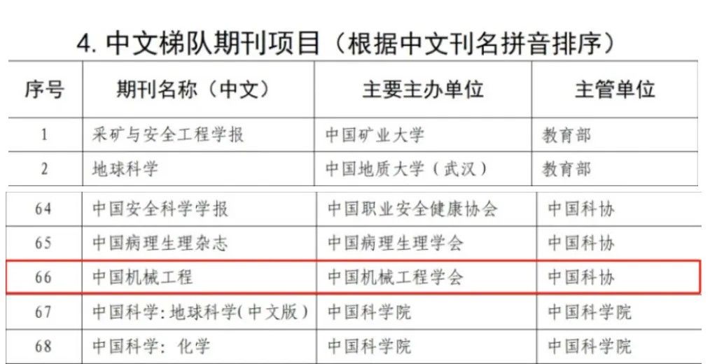近年来,《中国机械工程》在上级部门的指导和编委会的领导下,在机械工程领域专家学者们的支持下,瞄准自身定位,打造鲜明特色,在不断提升学术质量的同时,加大服务实业界和青年学者的力度,以内容为本、传播为翼、主动作为,踏实前行。入选本次中文梯队项目,是对《中国机械工程》内容质量和学术影响力的认可。在此,由衷感谢各位编委、审稿专家,以及广大读者作者!未来,期待在大家的支持和助力下,取得持续进步。