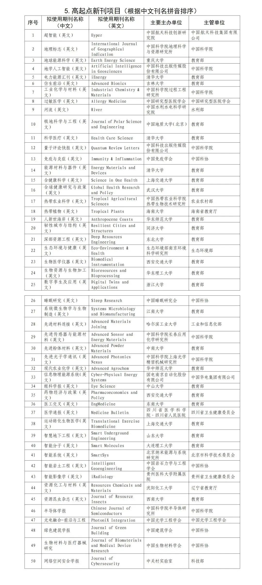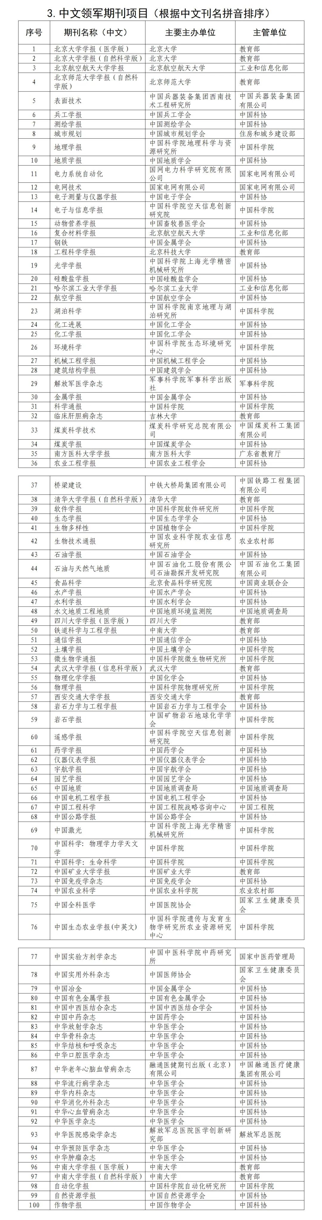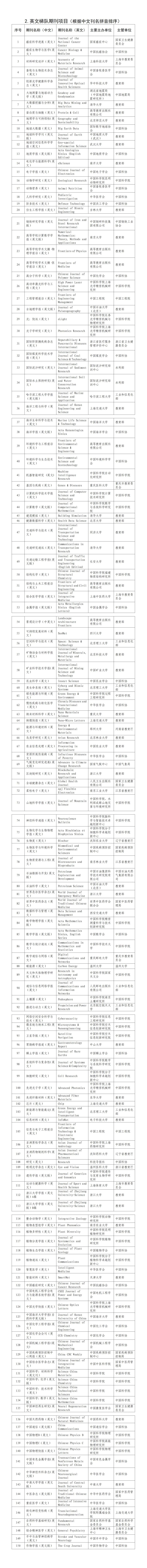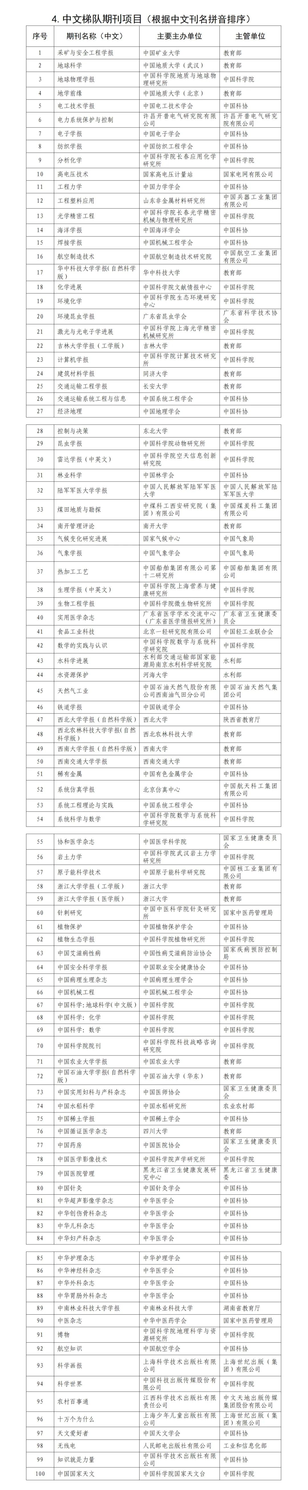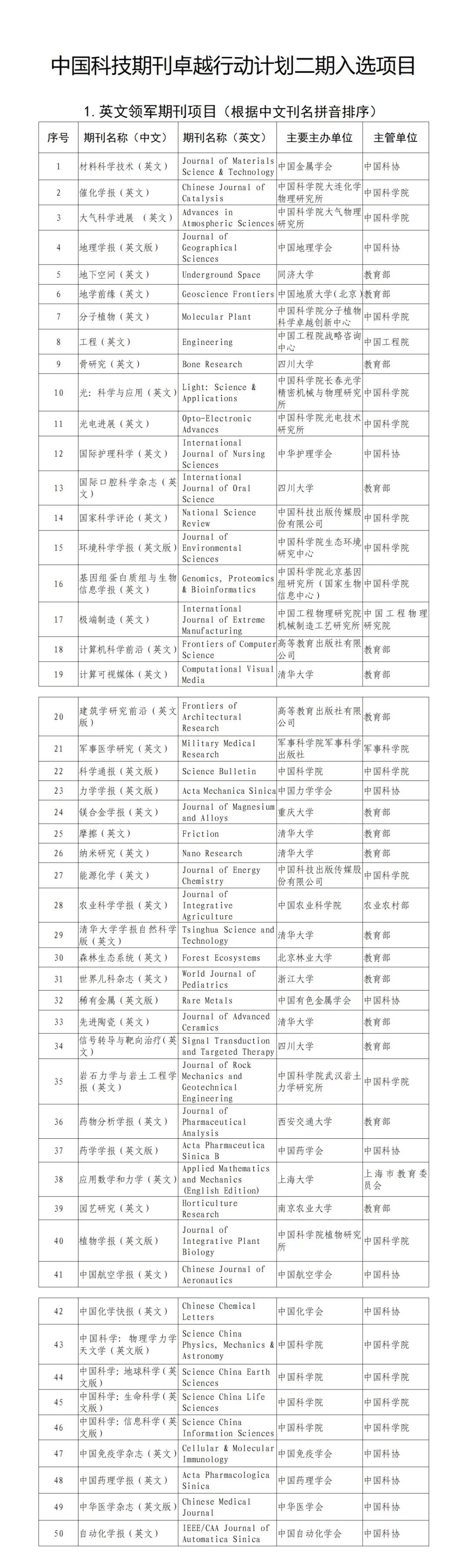 中国科技期刊卓越行动计划二期入选项目全名单: