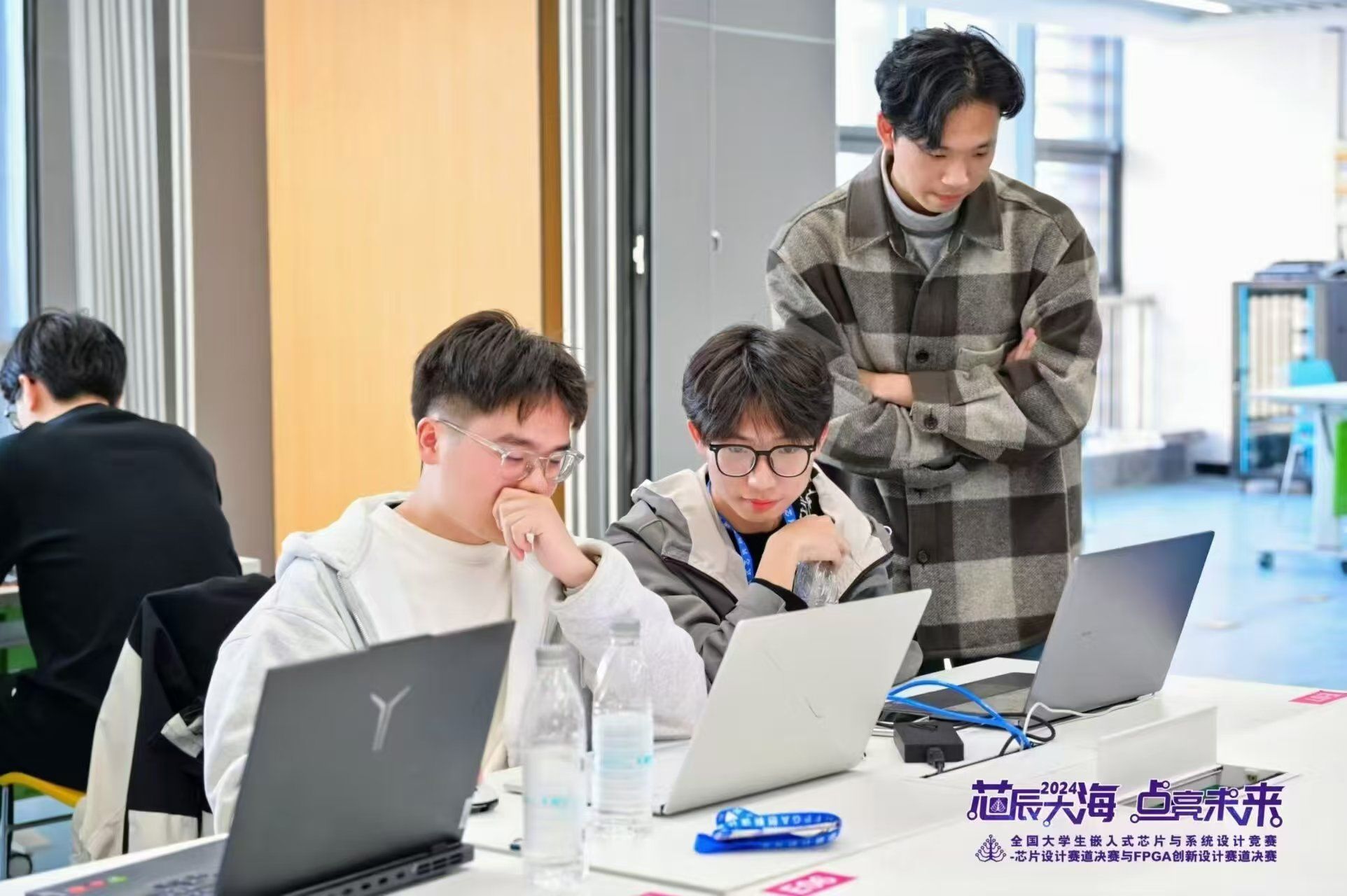 学院负责人介绍,为加快一流学科建设、助力区域集成电路产业发展,理学院(芯片产业学院)近年来持续加大实践教学资源投入,坚持以大赛为抓手,以赛促学、以赛促教,不断提升学生的工程实践及团队协作能力,强化创新意识,对标行业企业需求,培养芯片产业急需的专业人才。全国大学生嵌入式芯片与系统设计竞赛作为集成电路方向权威学科竞赛之一,是检验学生培养成效的重要标准。2024年理学院(芯片产业学院)第二次组织师生参赛,首次实现了在这一赛事中国家一等奖的突破,标志着人才培养质量的进一步提升。目前我校集成电路设计与集成系统、微电子科学与工程、电子科学与技术等集成电路相关专业学生参加大赛的覆盖率达90%以上,所培养专业人才获得行业企业的高度认可。