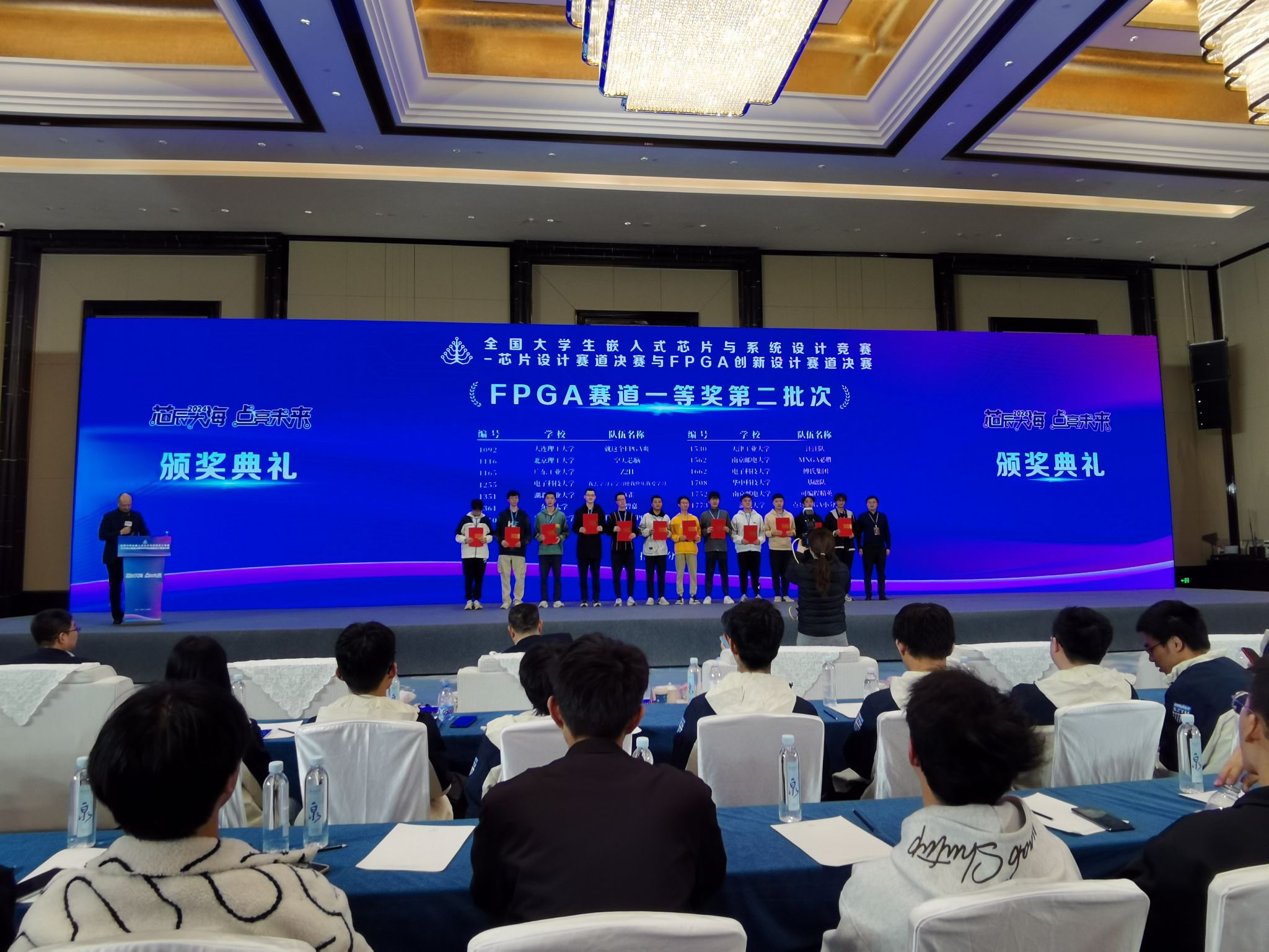 近日,第七届全国大学生嵌入式芯片与系统设计竞赛——FPGA创新设计赛道全国总决赛在南京集成电路培训基地圆满落幕,我校理学院(芯片产业学院)学子凭借扎实的专业基础和工程实践能力,获得全国一等奖1项、全国三等奖2项,实现了在该项赛事中全国一等奖的突破。