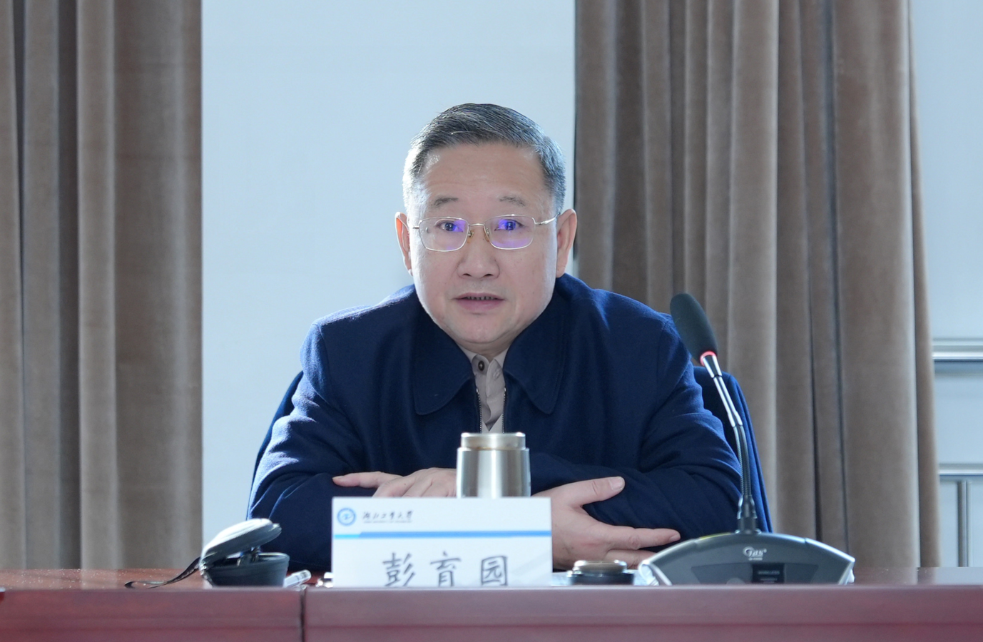 彭育园指出,要以坚持习近平新时代中国特色社会主义思想为指导,全面贯彻落实党的二十大、党的二十届三中全会及全国教育大会精神,聚焦立德树人根本任务和学校“学科建设年”总要求,强化教师思政引领力,着力提升教师思政与师德师风建设工作质效。他强调,教师思政工作及师德师风建设中应坚持以教育家精神为内核引领高素质专业化教师队伍建设,通过坚守初心使命强化教师政治表率力、涵养高尚师德强化教师价值传播力、提升育人智慧强化教师教学吸引力、营造躬耕氛围强化教师情怀感召力,形成强化教师思政引领力“四维”路径。他提出,强化教师思政引领力,一是要提高政治站位,压实工作责任;二是要坚持问题导向,强化系统观念;三是要突出正面引导,聚焦事前防范。他要求,各单位(部门)要牢记教师是学校事业发展的第一资源,以高度的责任心和使命感做好教师思政及师德师风建设工作,助力教师全面发展,为学校事业的内涵式发展构筑高素质人才基础,努力在中国式现代化湖北实践中展现新担当、实现新作为。