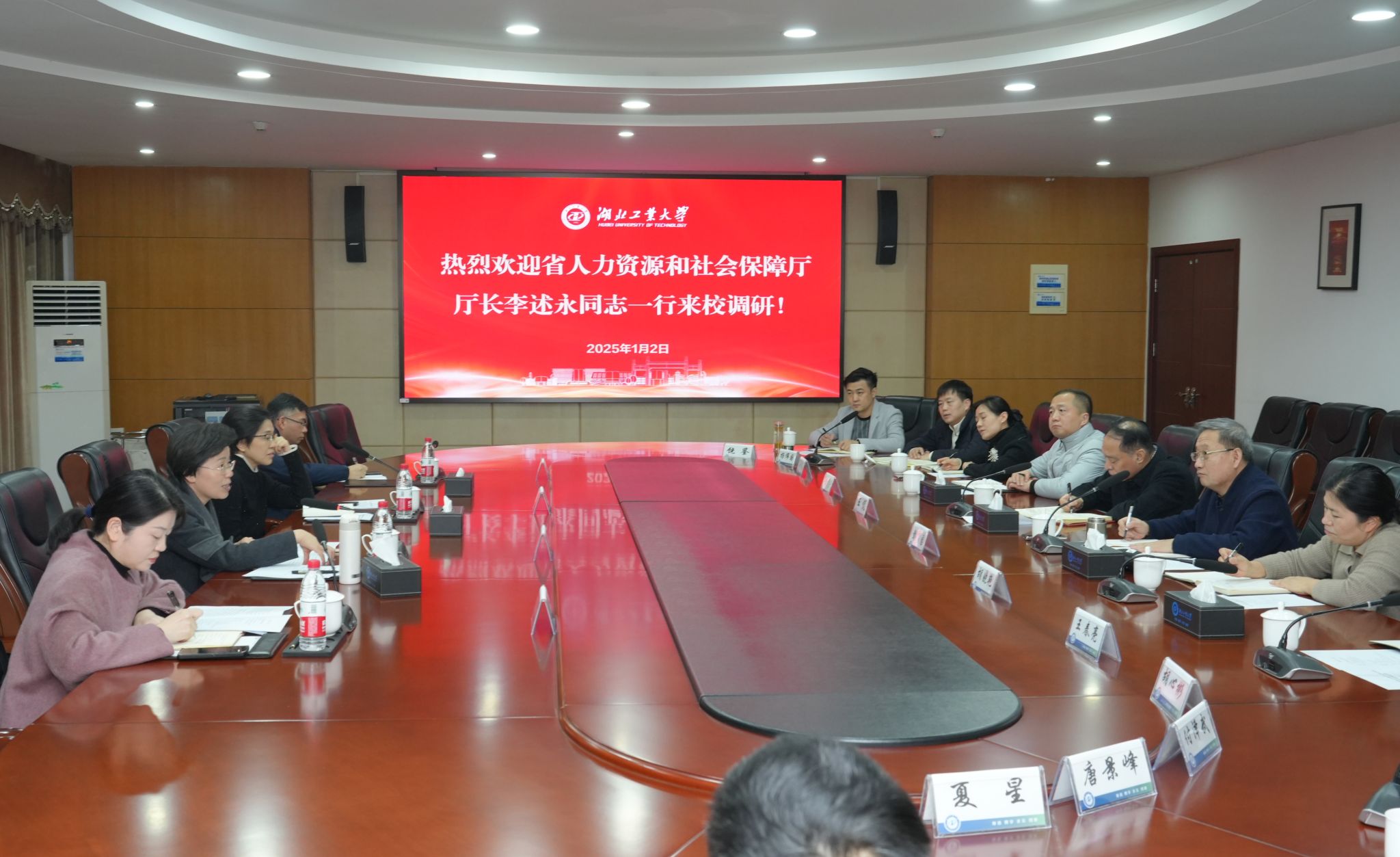 1月2日下午,省人社厅党组书记、厅长李述永一行来校调研交流。校党委书记彭育园主持会议,党委副书记胡晓艳和党委常委、副校长王侃出席会议。