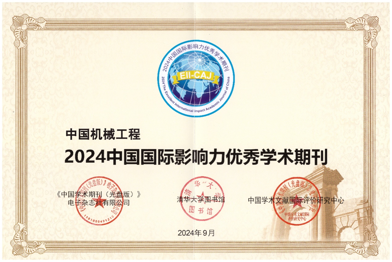 2024年12月24日,中国知网和清华大学图书馆联合研制发布《中国学术期刊国际引证年报》(2024版),《中国机械工程》入选“2024中国国际影响力优秀学术期刊”(自然科学与工程技术·中文)。
