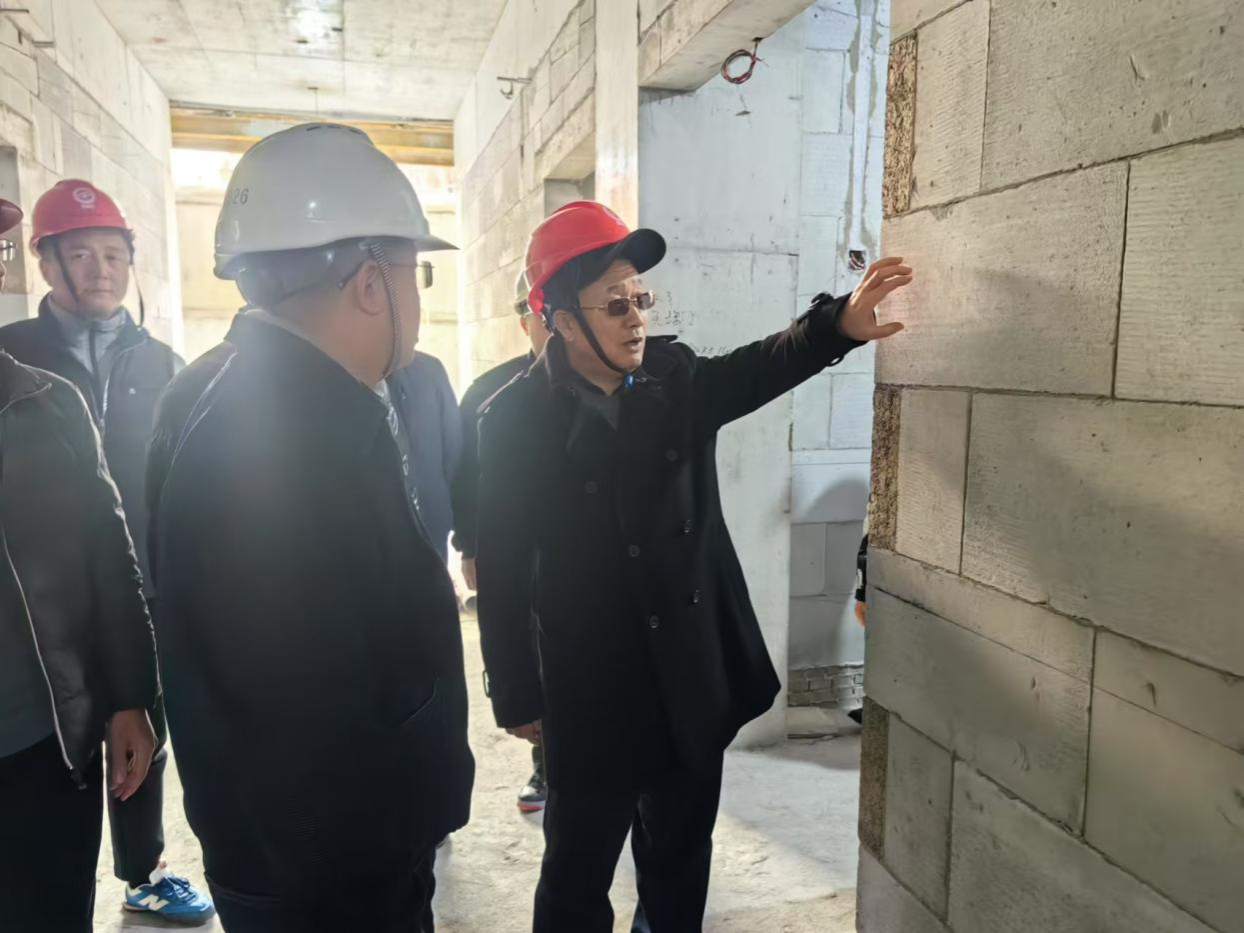 在项目现场,彭育园对基建取得的成绩予以肯定,并亲切慰问了项目一线人员。他强调,2025年为学校“十四五”事业发展的收官之年,全体上下要继续鼓足干事劲头、保持高昂士气,加快推动各项基建项目落地成效。他要求,一是要抓好安全生产,压实压紧各层安全生产责任,切实把安全生产之弦绷得更紧、安全生产之举做得更实,实现学校基建高质量发展和高水平安全的良性互动;二是要抓好质量进度,要有条不紊实施研究生公寓后续装饰、安装工程、室外工程等,严格按照时间节点,优质高效推进项目建设,确保工程早日建成发挥效益;三是要科学规划学生宿舍床位资源,结合学校实际情况,着眼未来发展,持续优化床位整合与分配,确保学生住得安心、放心、舒心,切实改善宿舍居住环境,提升“三全育人”质量。