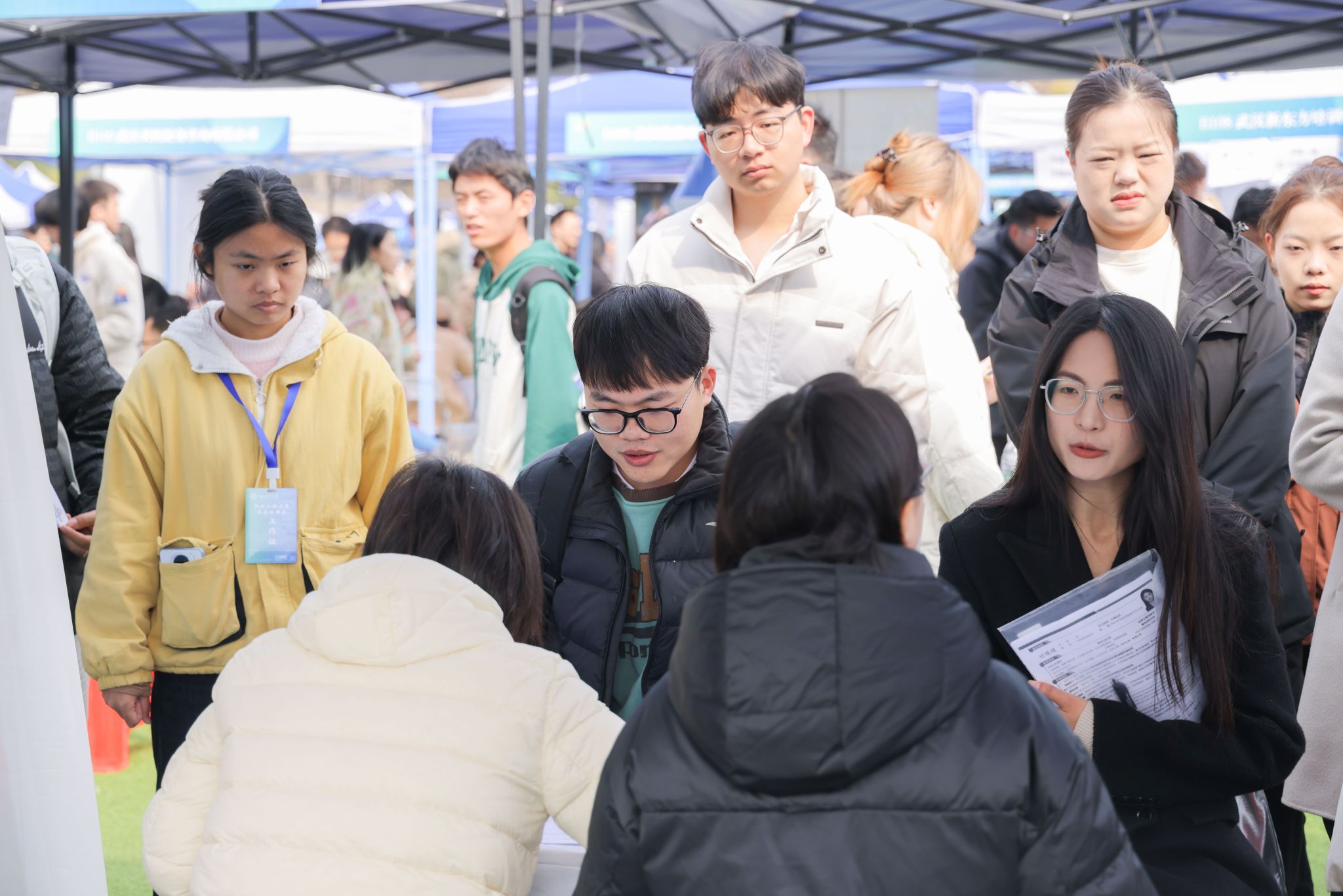 湖北工业大学职业技术师范学院的夏同学有信心在本次春招中获得1到2份录用通知书。来招聘会前,他提前了解了现场相关企业,结合个人优势,决定瞄准网络相关岗位求职。“这与我先前参与的‘医院网络优化’项目直接相关,能最大化发挥我的技术经验与行业知识优势。”此外,他还邀请学院老师指导优化自己的简历、与室友进行模拟面试等,以期给面试官留下更深的印象。