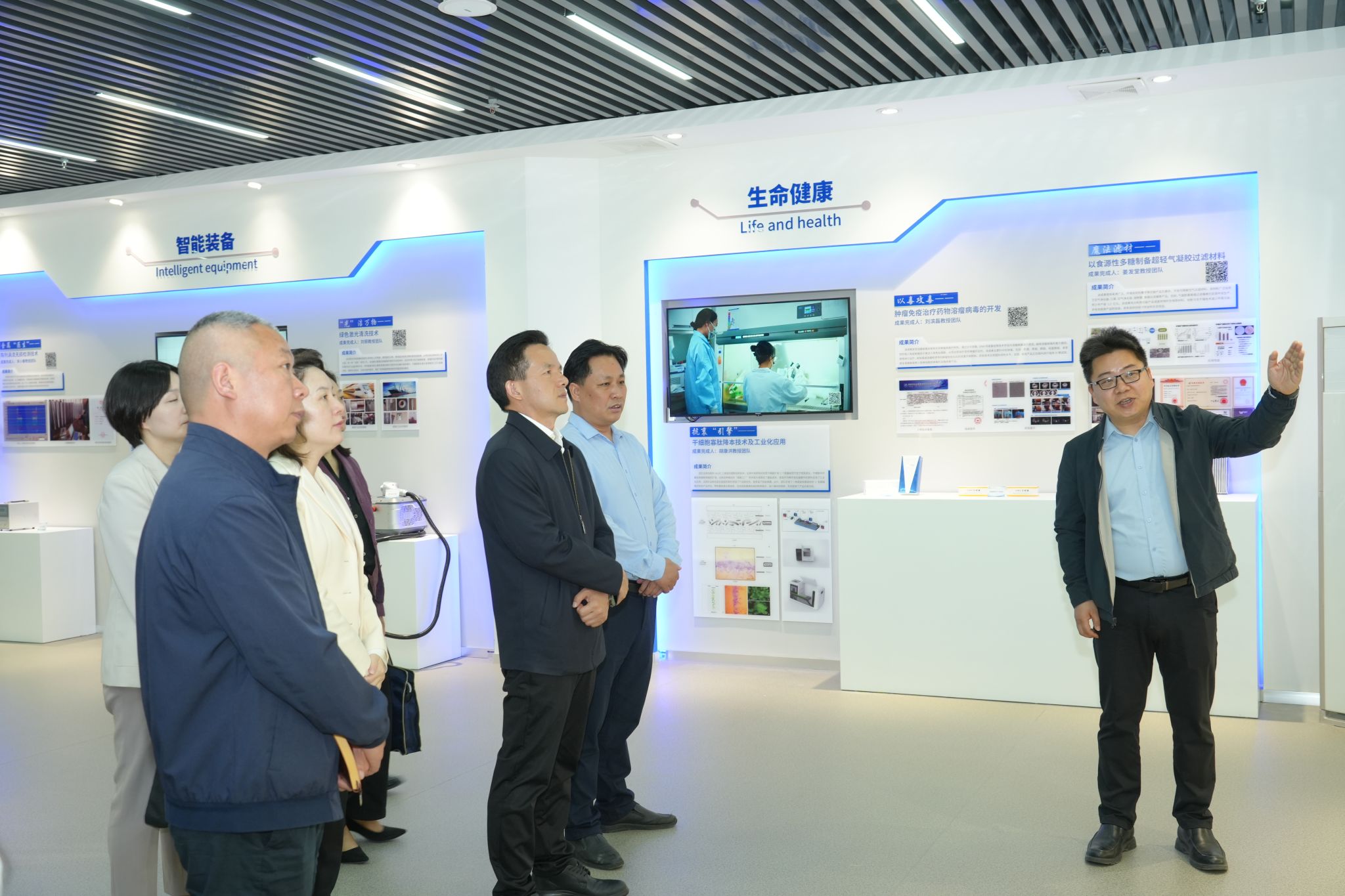 陈革鸿一行实地调研了学校科技成果转化中心,详细了解近年来学校科技创新代表性成果。