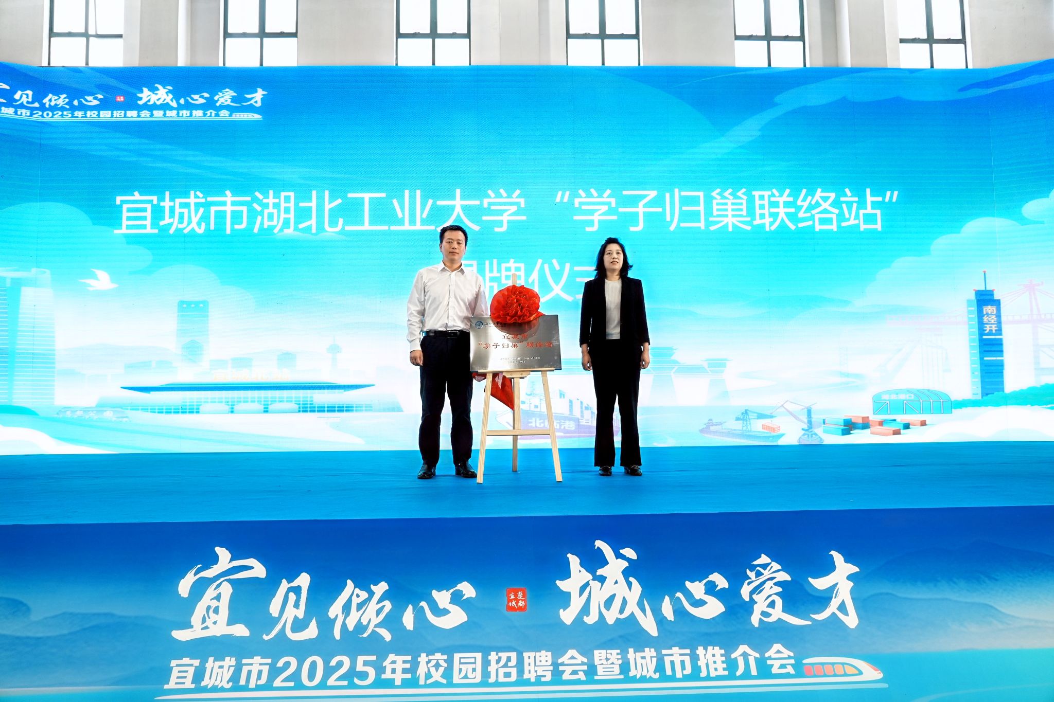随后,我校与宜城市代表共同为“学子归巢”联络站揭牌,并为联络站站长颁发聘书。