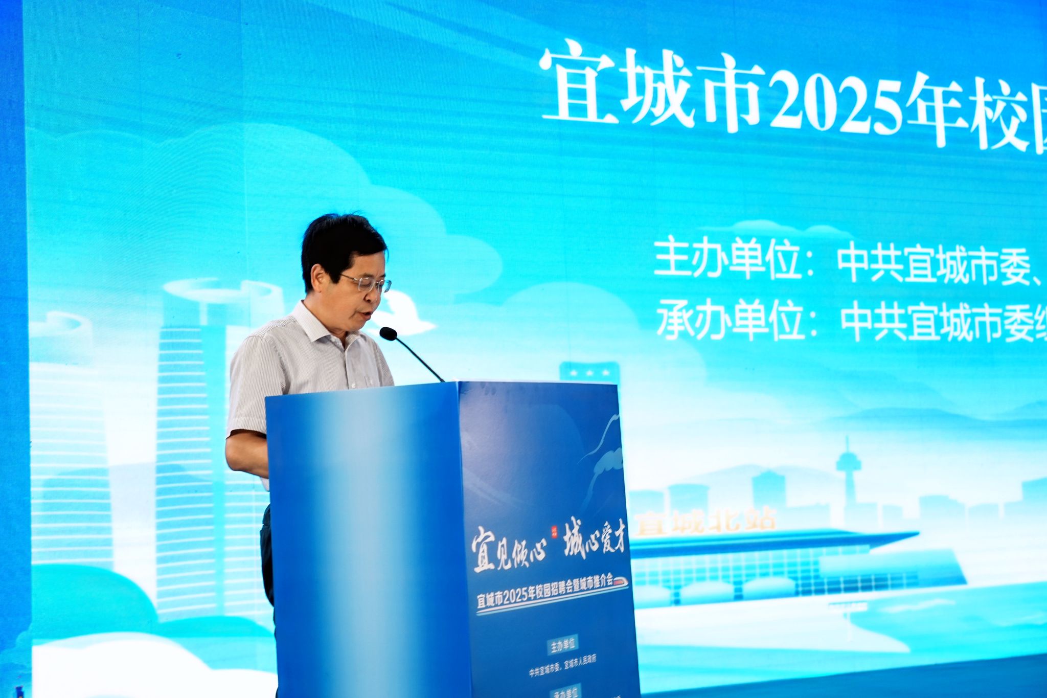 4月27日,“宜”见倾心 “城”心爱才——宜城市2025年校园招聘会暨城市推介会在我校篮球馆举行,63家宜城市用人单位带来362个就业岗位。校党委常委、副校长陈自才,宜城市党委常委、宣传部部长蒙瑾、宜城市副市长陈珊出席本次活动。