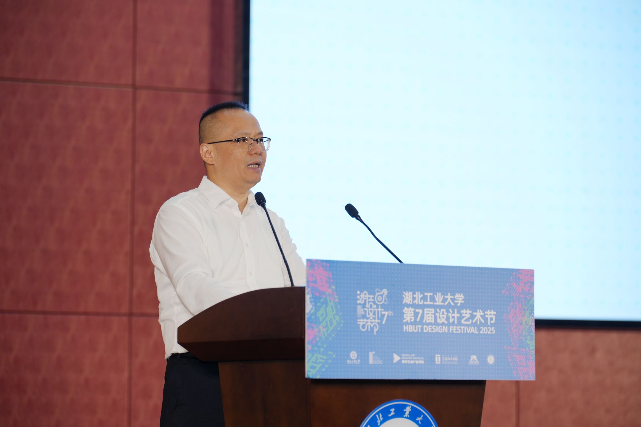 开幕式上,校党委常委、副校长贺行洋致辞。贺行洋表示,湖北工业大学将美育定位为“培根铸魂”的关键路径,设计艺术节开办七年以来,已成为学校美育工作的重要载体,成为师生展示才华、交流思想的舞台,更成为连接学术与产业、教育与社会的桥梁。本届艺术节聚焦可持续发展、智能设计、文化创意等前沿领域,通过作品展览、学术论坛、工作坊等丰富形式,展现设计学科的时代价值。他期待通过这一平台,进一步激发师生的创造力,探索艺术与科技、传统与现代的融合路径,为区域经济和社会发展贡献智慧与力量。
