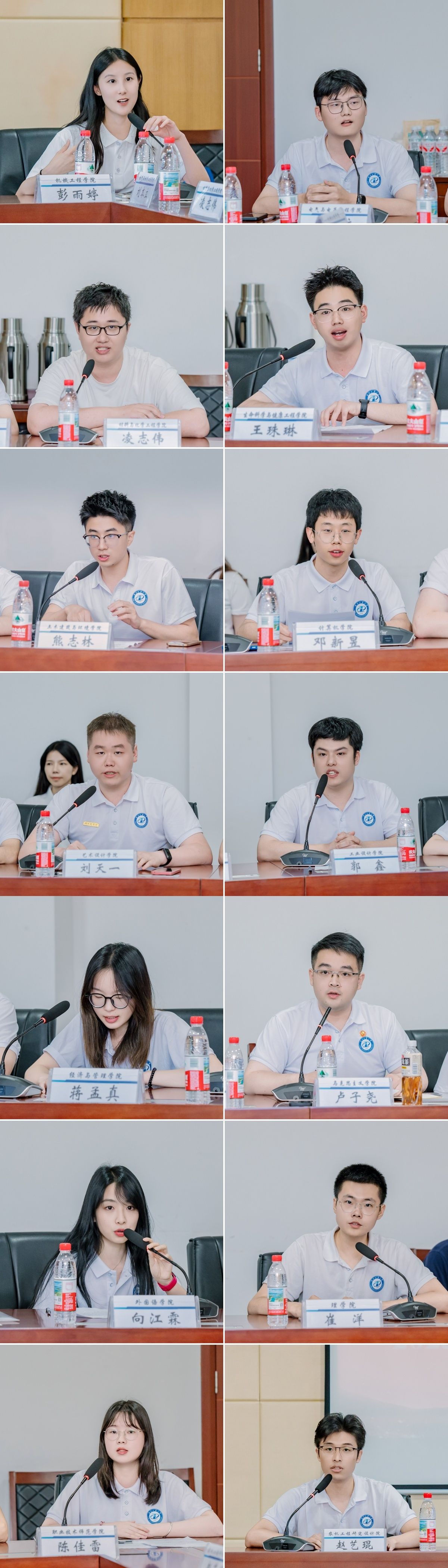 座谈会上,来自14个研究生培养单位的毕业生代表们踊跃发言,倾吐衷肠。他们追忆青春,分享了在母校学习生活一枝一叶总关情的美好、书山寻宝上下求索的艰辛、学海泛舟终有所获的喜悦,深情表达了对学校、导师以及辅导员尽心培育的感恩;他们展望未来,分享了即将读博深造或步入职场的发展规划;他们建言献策,在临别之际对母校发展提出了如深入推进校企融合更好提升专硕专博培养质量、加强研究生校友会建设等诸多建设性意见。