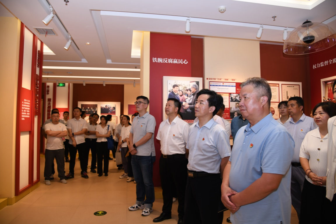 在警示教育展厅,全体机关干部接受了“初心之问”“蚁穴之害”“围猎之祸”“囹圄之叹”四个主题警示教育。前车之覆,后车之鉴,每一个腐败案例都是鲜活的教材、长鸣的警钟,令在场机关干部深刻感受到法纪的威严,心灵受到震撼、灵魂受到洗礼、精神得到净化、党性得到加强。