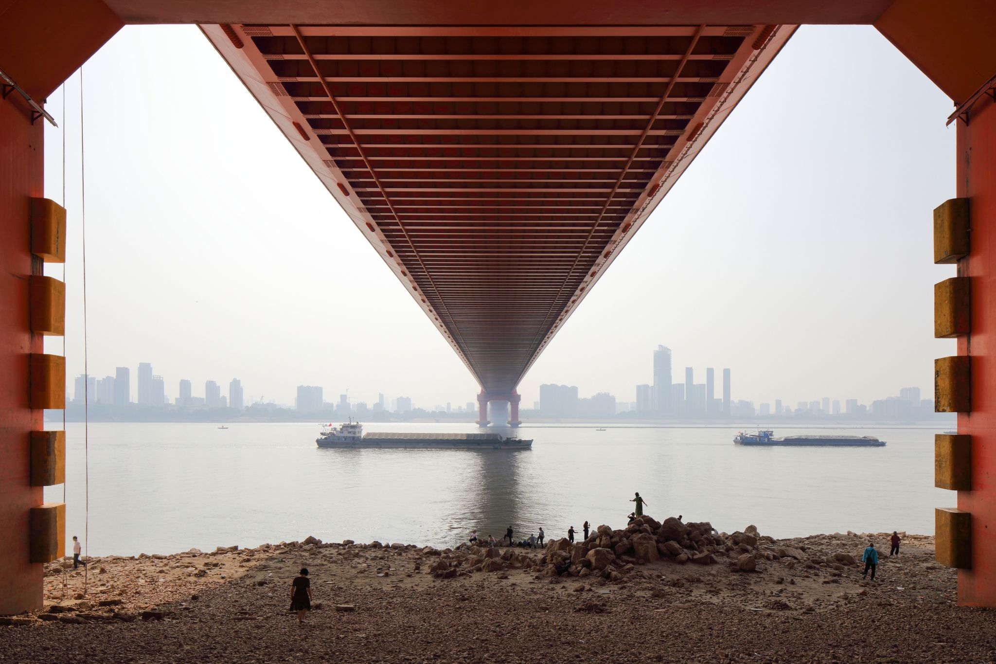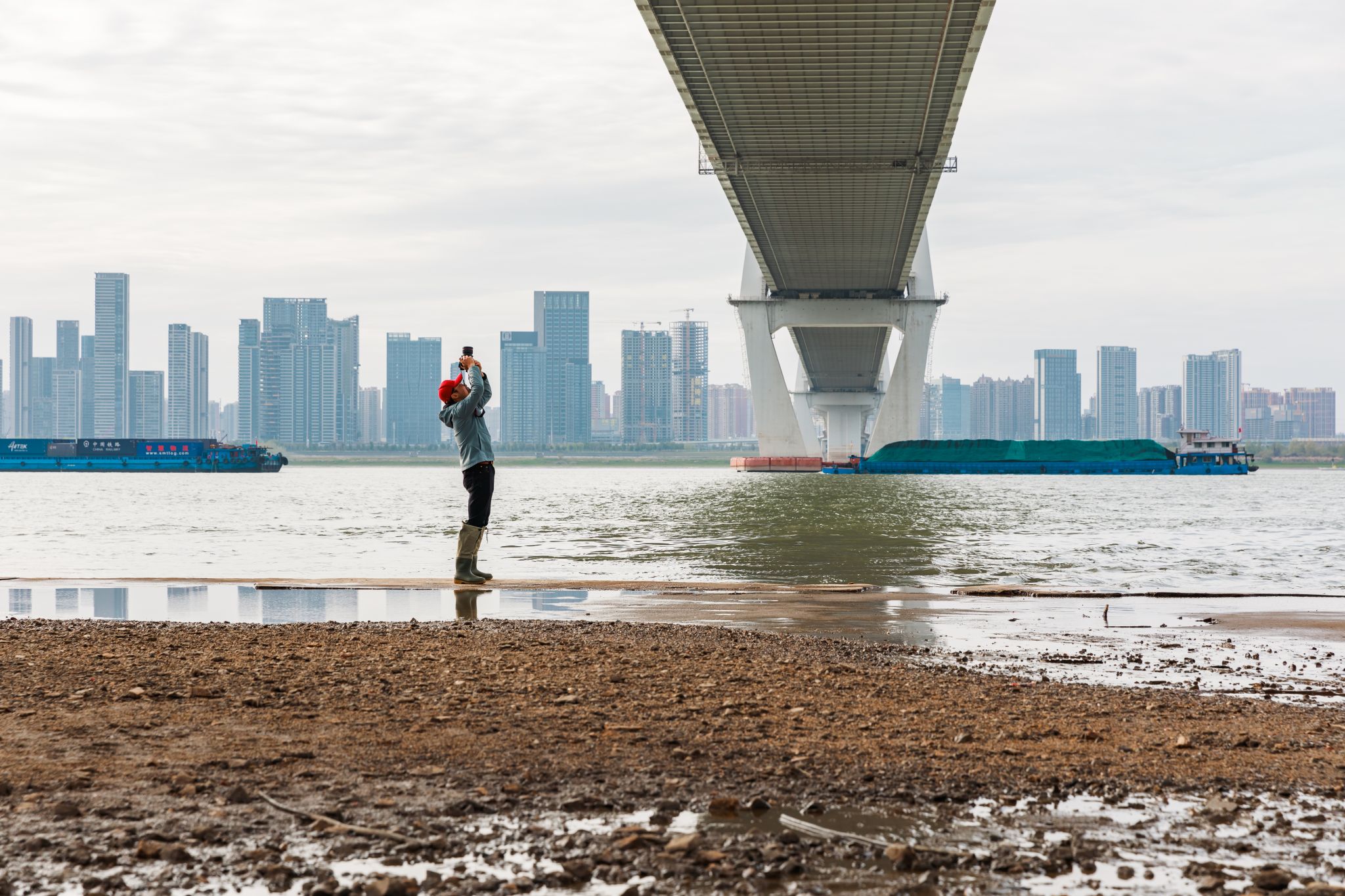 2022年9月,长江迎来有史以来水位线最低的时刻,很多遗迹景观被暴露了出来。这一契机下,他拿着相机沿着江边开始了拍摄,用当代的视角观察长江沿岸的人文景致、地域风貌。