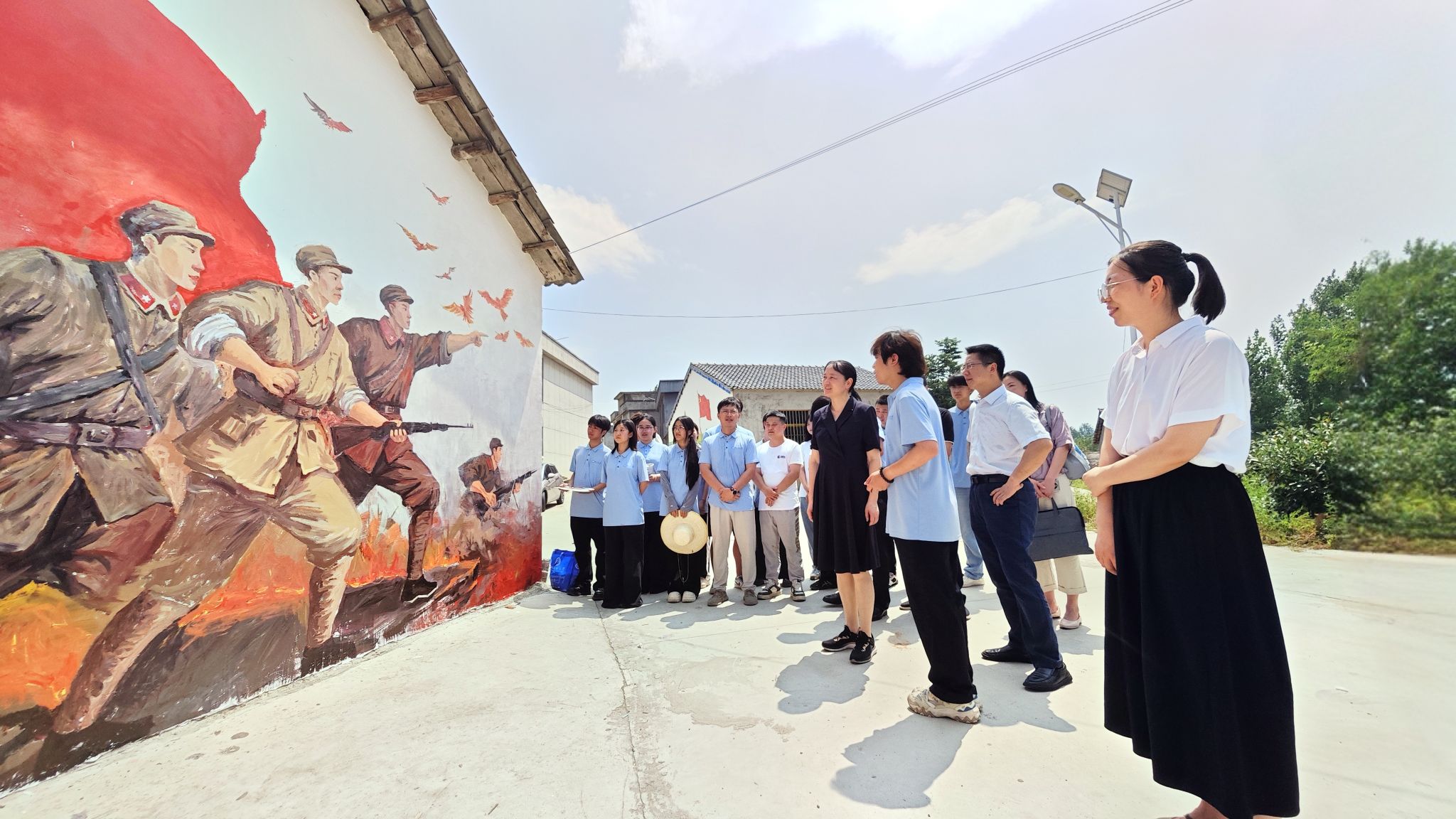 在七里坪镇八一村,桂丽看望慰问工业设计学院“并肩”社会实践队,实地察看了实践团队的主题墙绘。她鼓励同学们在基层一线上好行走的思政课,充分发挥专业优势,为湖北省美丽乡村建设贡献青春力量。她提醒同学们实践期间注意防暑降温、确保实践安全。