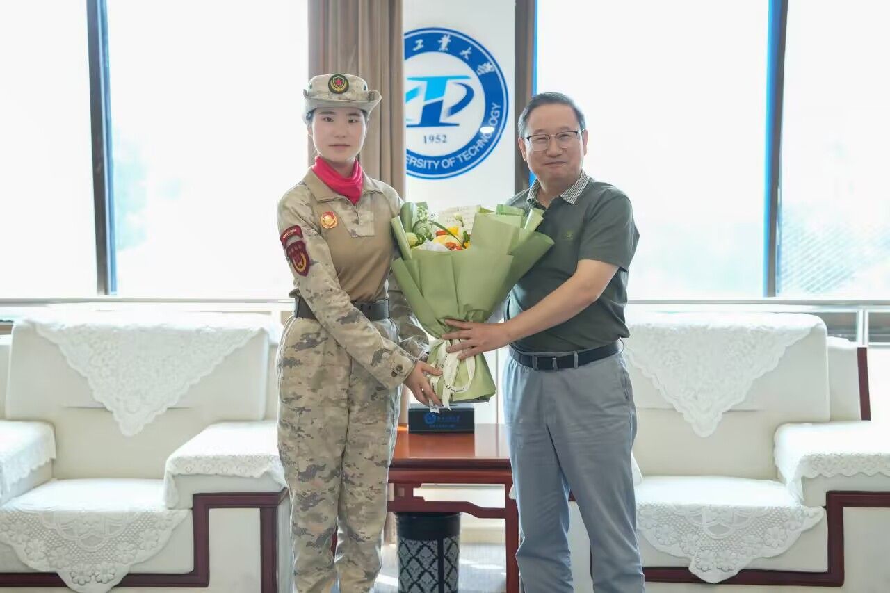 彭育园代表全校师生对翟玉环同学圆满完成阅兵任务表示热烈祝贺,并细致询问了翟玉环在训练期间的生活和体验。他说,参与国家盛典,不仅是个人的荣誉,更是全校的光荣,是湖北工业大学“三全育人”成果的具体体现。