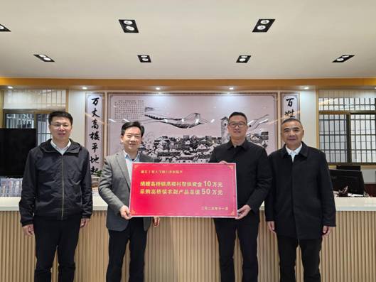 宋小春一行还考察了镇办企业,参观了高楼村堰塘整治工程,并且代表学校向高楼村捐赠帮扶及采购资金,深入当地农户开展了走访慰问。