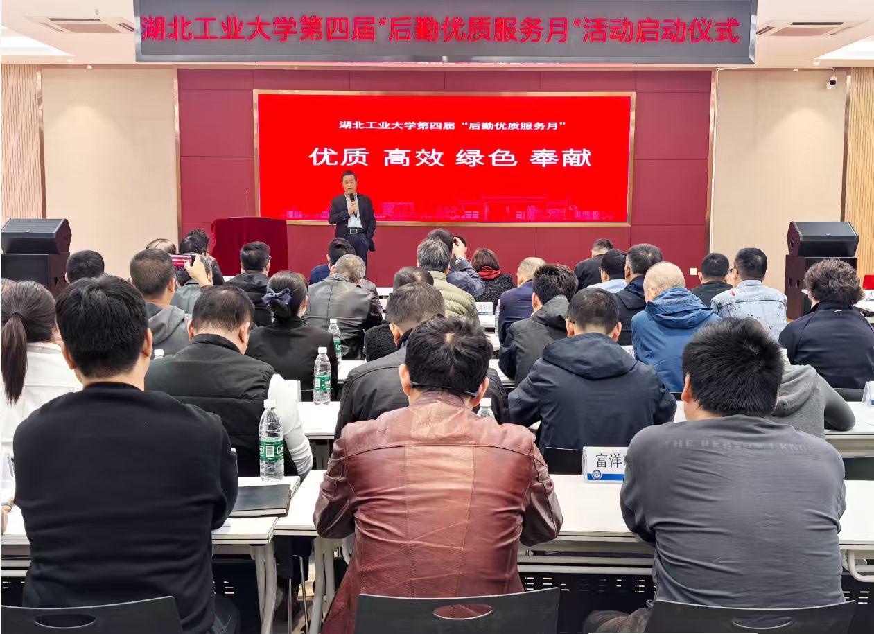 10月29日下午,湖北工业大学第四届“后勤优质服务月”活动正式启动,校党委常委、副校长陈自才出席启动仪式。校党委宣传部、党委教师工作部、学生工作部(处)、工会、团委、党委研究生工作部、离退休工作处及后勤管理处相关负责人参加了启动仪式,后勤管理处各科室(中心)负责人及各后勤服务企业代表共计50余人参加活动。
