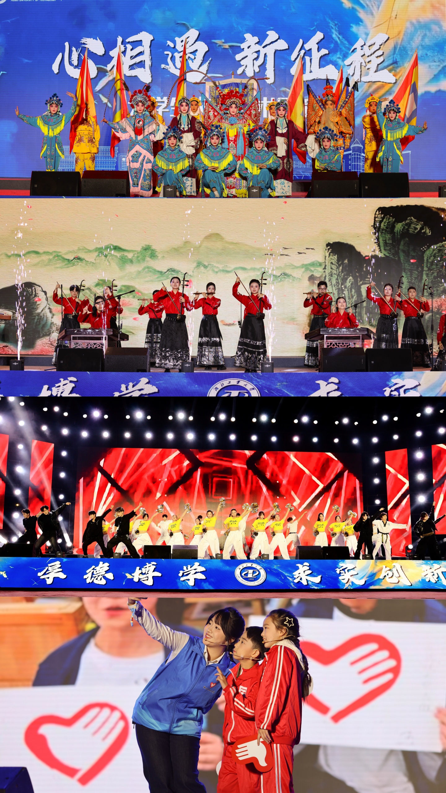 青春逐梦,扬帆启航。11月3日晚,湖北工业大学“心相遇·新征程”大学生文化艺术展演在中区操场成功举办。校党委副书记、副校长桂丽出席活动。