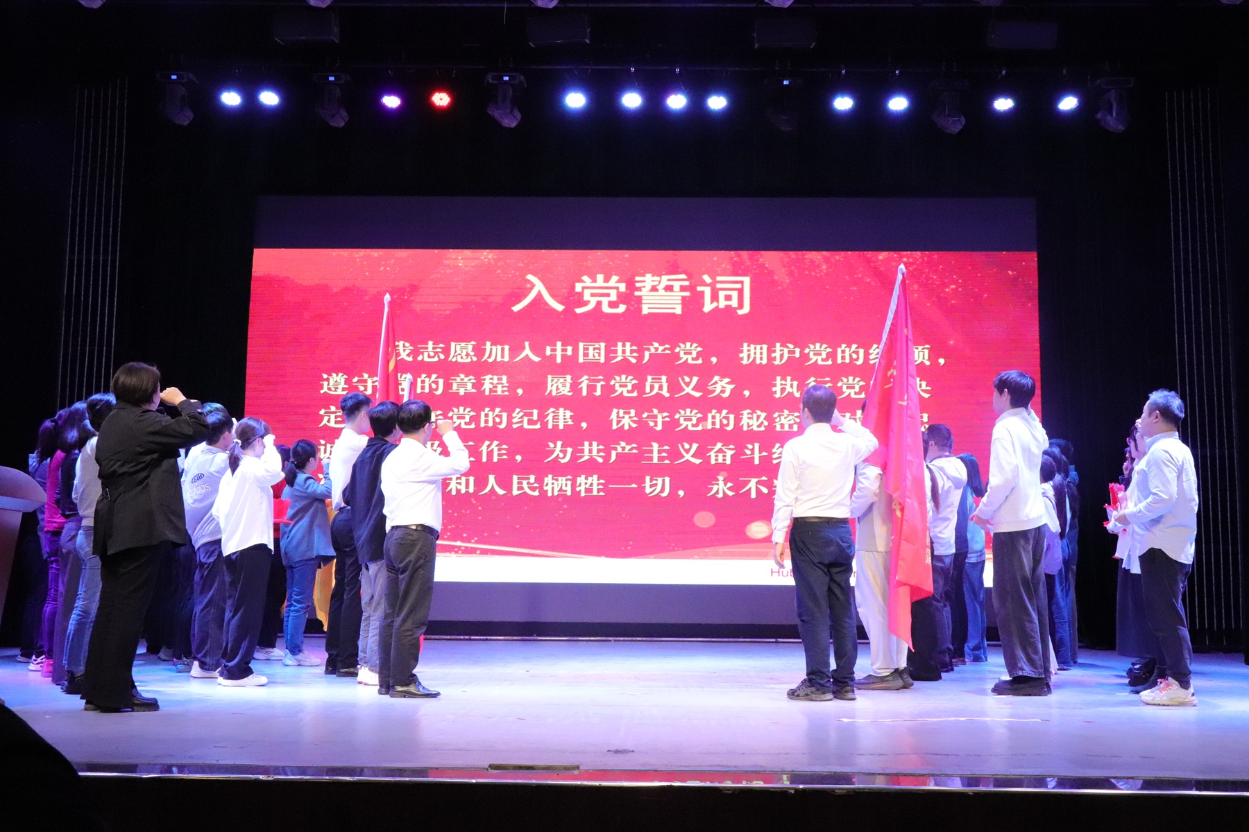 随后在院党委副书记龚奕的领誓下,台上代表与在座的全体党员起立,紧握右拳,面向党旗重温入党誓词,展现全体师生党员不忘初心、牢记使命的坚定信念。