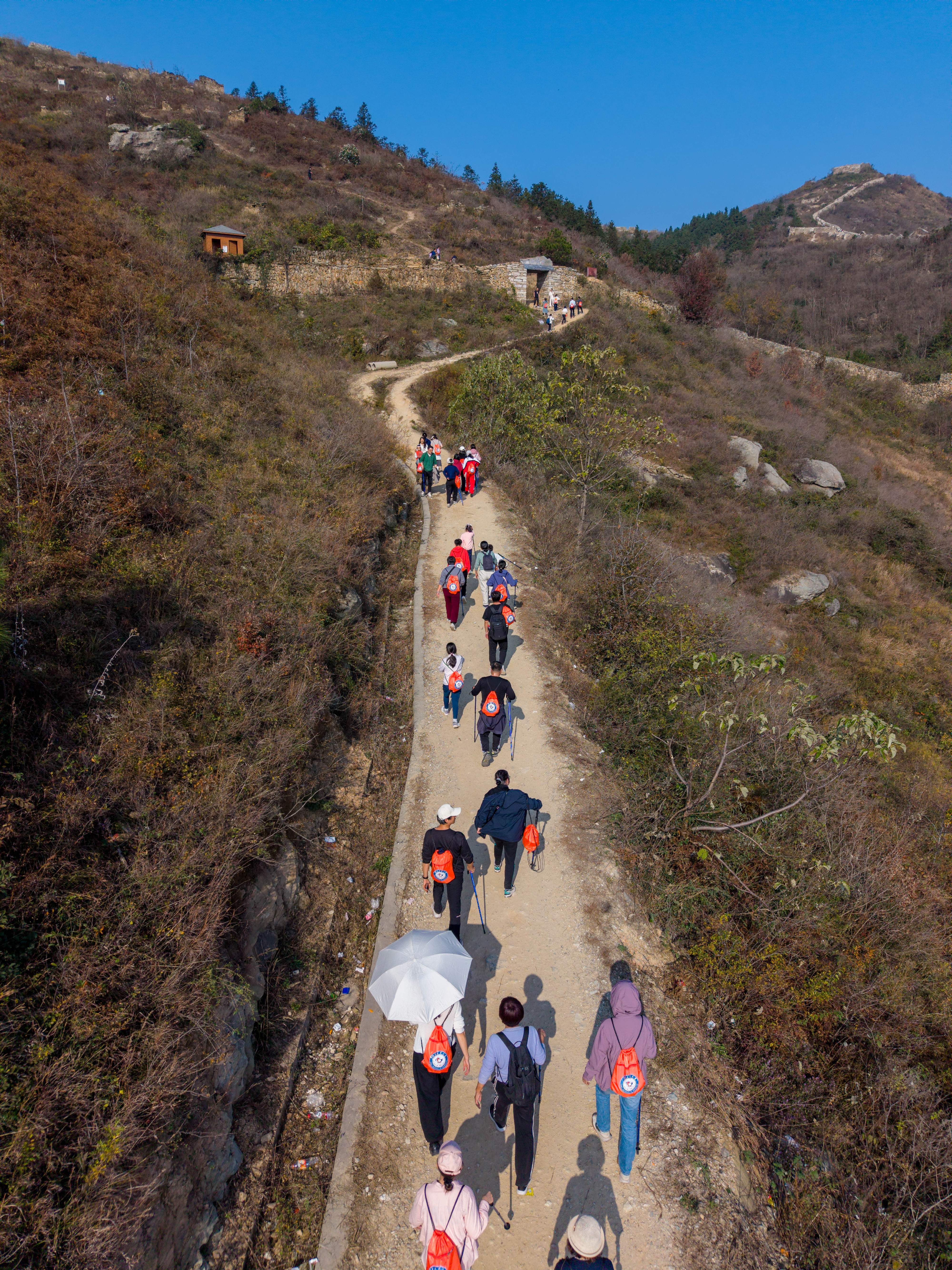 本次徒步地点位于武汉市黄陂区李集街驻程岗村耳门李湾以北的龙王尖古寨遗址,这里是大别山余脉,徒步线路约6公里。初冬时节,晴空万里,金黄的草甸与连绵的山峦、古老的石寨交相辉映。师生们远离城市喧嚣,在相互交流、携手攀登中,增进了解、挑战自我,一起欣赏自然美景,共同感受雄伟壮观的历史遗迹,一路欢声笑语、神采飞扬,气氛融洽。