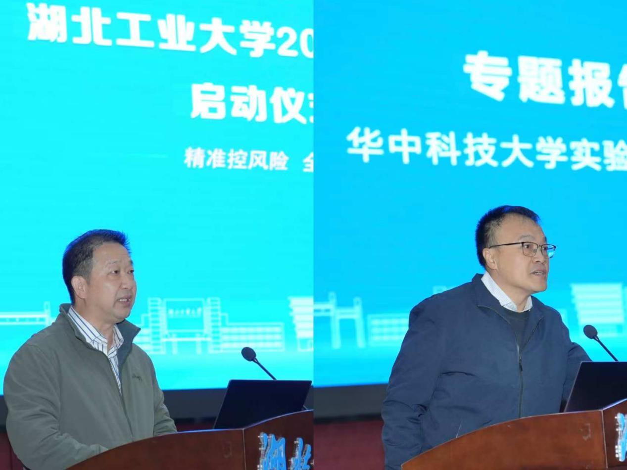 启动仪式上,华中科技大学实验室与设备管理处处长刘红军教授作了题为《厘清思路,真抓实干——构建协同高效的实验室安全保障体系》的专题报告,从实验室安全认识、实验室安全挑战以及实验室安全工作的重点与内容等方面进行系统讲解,为与会人员带来了一场内容详实、实用性强的安全教育课。