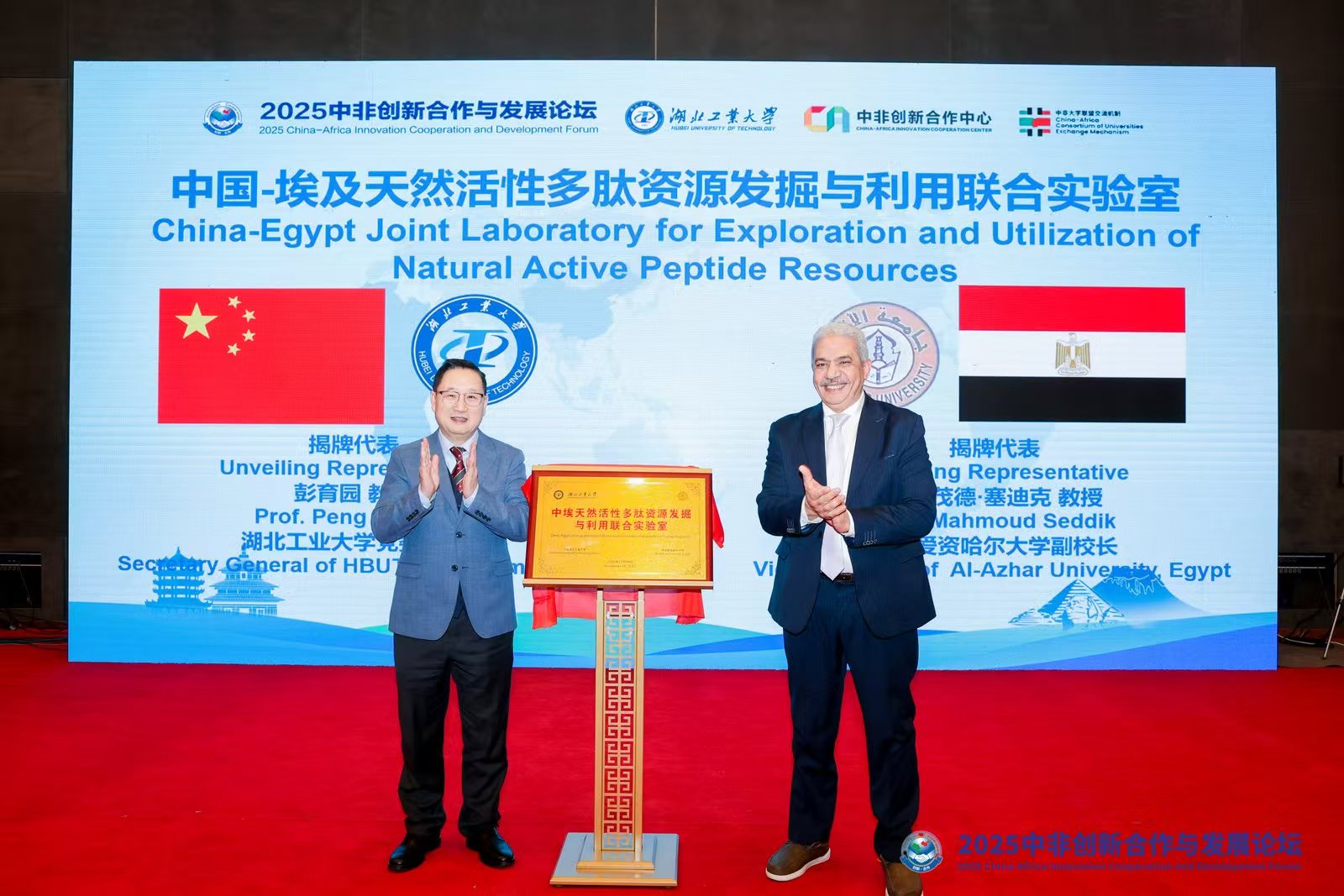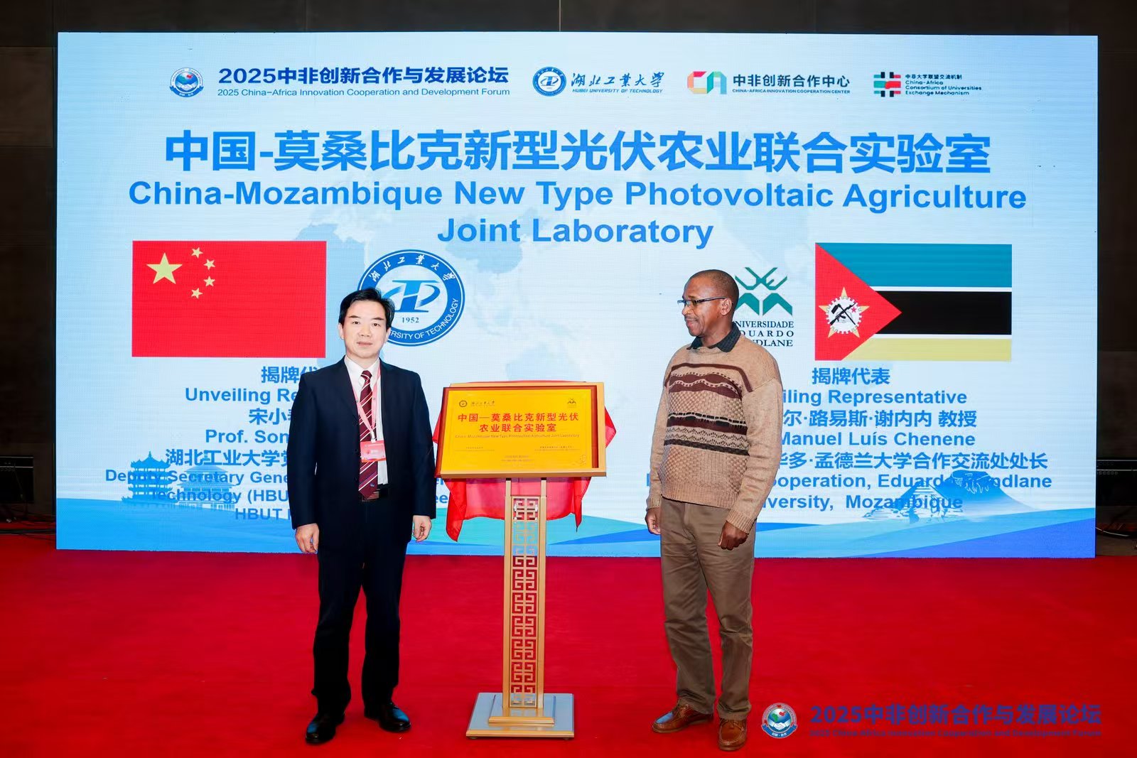 现场,“新型光伏农业联合实验室”和“中国-埃及天然活性多肽资源发掘与利用联合实验室”揭牌。新型光伏农业联合实验室由湖北工业大学和莫桑比克爱德华多·孟德兰大学共建,着力研究解决当地缺电缺水难题下的农作物栽种问题;中国-埃及天然活性多肽资源发掘与利用联合实验室由湖北工业大学和埃及爱资哈尔大学共建,致力于研究从天然资源中发掘具有抗旱、促生功能的活性多肽,以科技创新助力提升非洲地区的农作物产量与粮食安全。