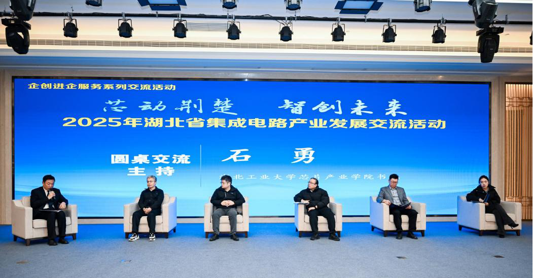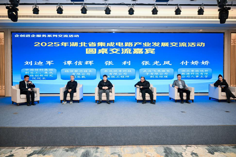 本次圆桌会议以“从技术到产业:构建湖北集成电路的创新生态圈”为主题,精准呼应了省委关于发展新质生产力、推动科技与产业创新深度融合的战略部署。会议汇聚了来自“产、学、研、用”不同关键环节的五位资深专家,阵容强大,包括中国信科集团副总工、集成电路创新研究院院长刘迪军,稳顶聚芯技术有限公司副总裁谭信辉,东风悦享科技有限公司高级工程师张利,武汉飞恩微电子有限公司副总经理张光凤,以及湖北赛格瑞新能源科技有限公司人事主管付娇娇。