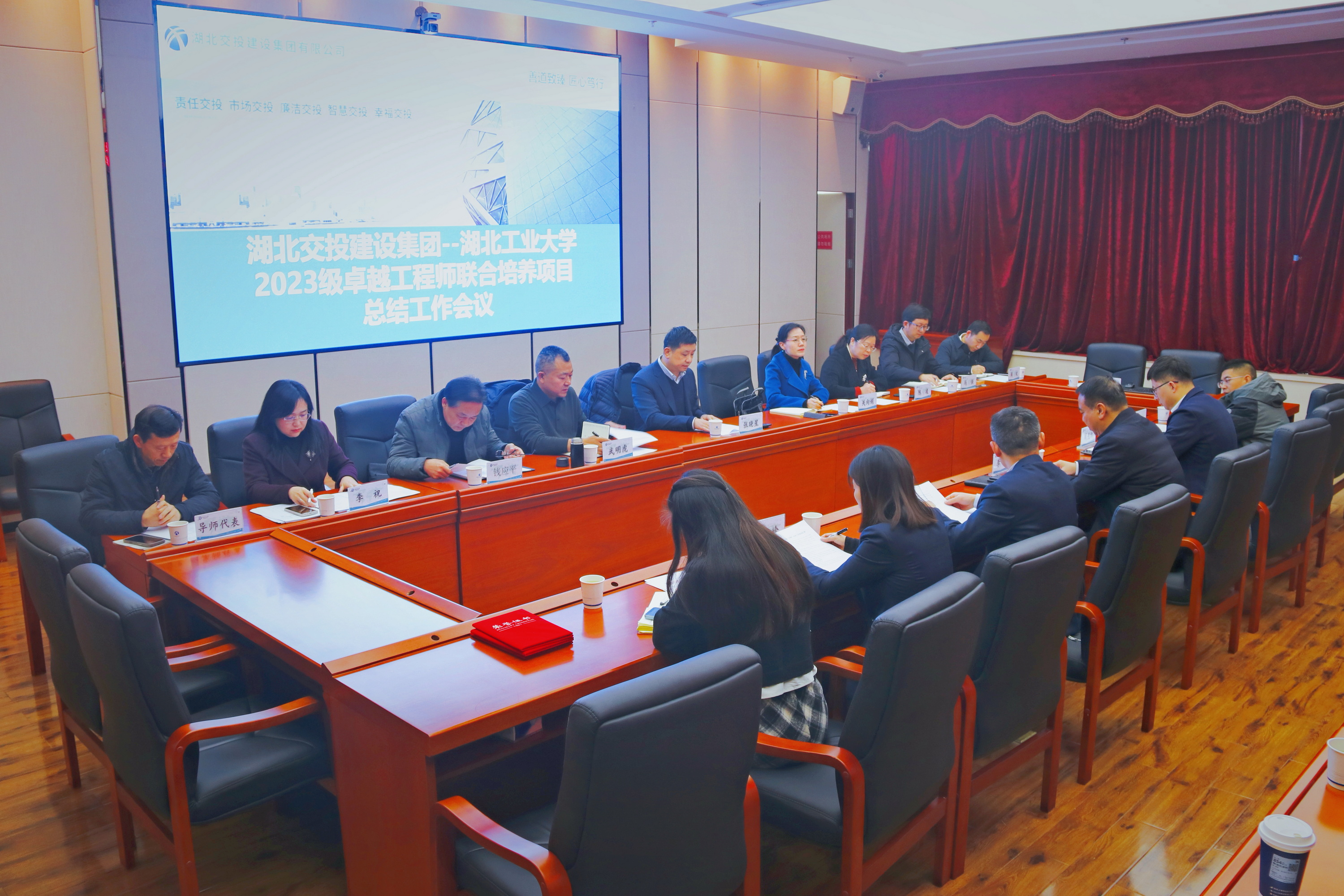 12月25日上午,湖北工业大学与湖北交投建设集团联合召开2023级卓越工程师研究生联合培养工作总结交流会。湖北工业大学副校长张晓星,湖北交投建设集团党委委员、副总经理、工会主席李兵,校企双方相关职能部门负责人、导师代表及2023级联合培养研究生共同参会,系统总结项目阶段性育人成果,精准部署后续毕业环节重点工作。