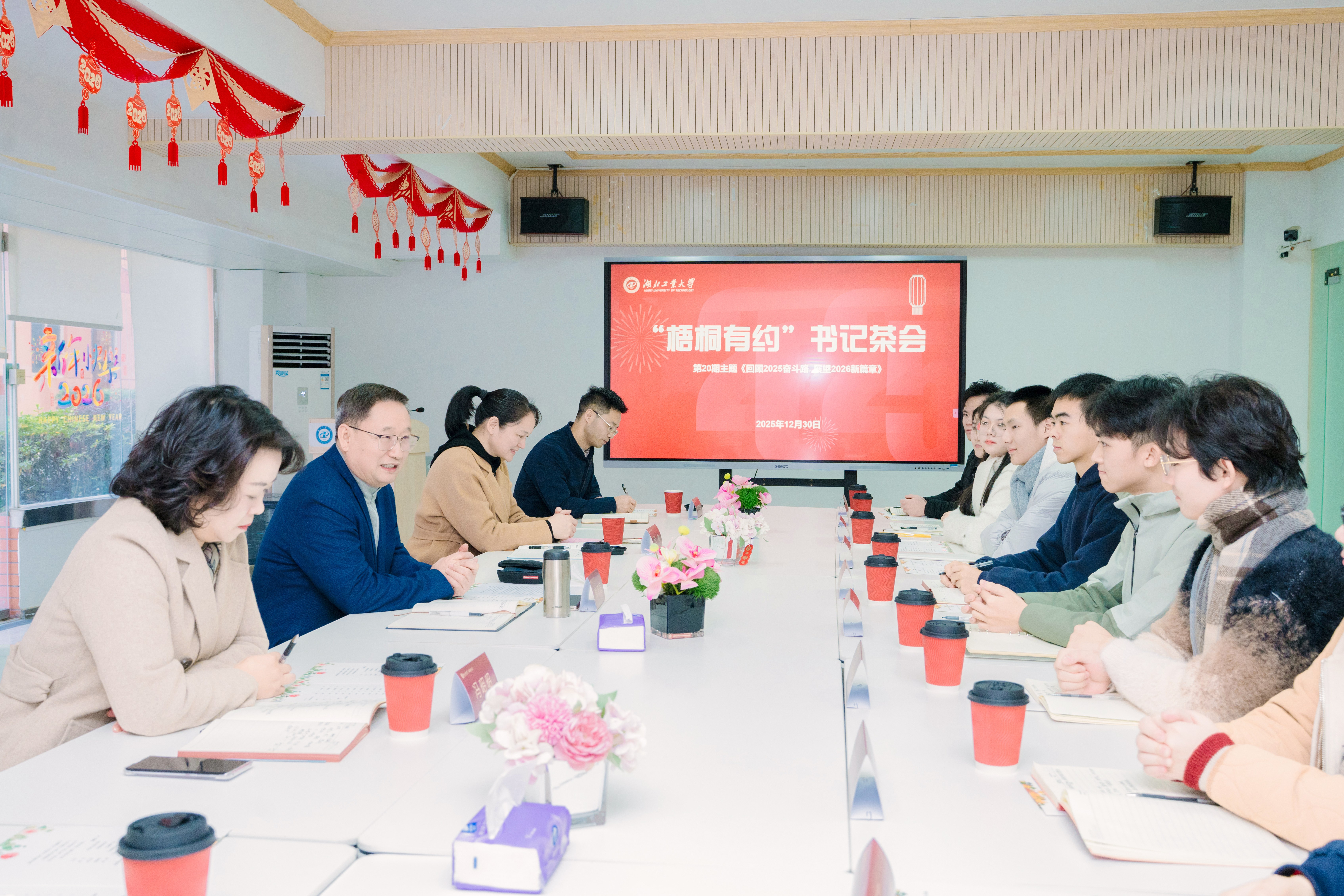 12月30日上午,校党委书记彭育园深入学生社区,开展第20期“梧桐有约”·书记茶会,与学生代表面对面交流,指导学生成长发展,听取学生意见建议。校党委副书记、副校长桂丽陪同出席。