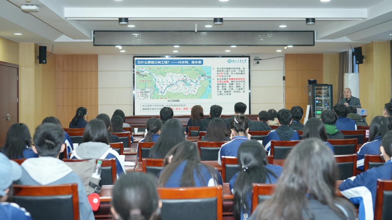 专题交流讲座环节,学校招生与就业指导处、国际学院负责老师分别介绍了学校的基本情况及香港籍学生招生政策。土木建筑与环境学院周宜红教授以《三峡水利枢纽工程效益》为题,用专业的讲解、生动的案例,为香港中学生解读了三峡水利枢纽工程的建设意义、综合效益,让大家深刻感受国家重大工程的科技力量与发展成就,现场反响热烈。