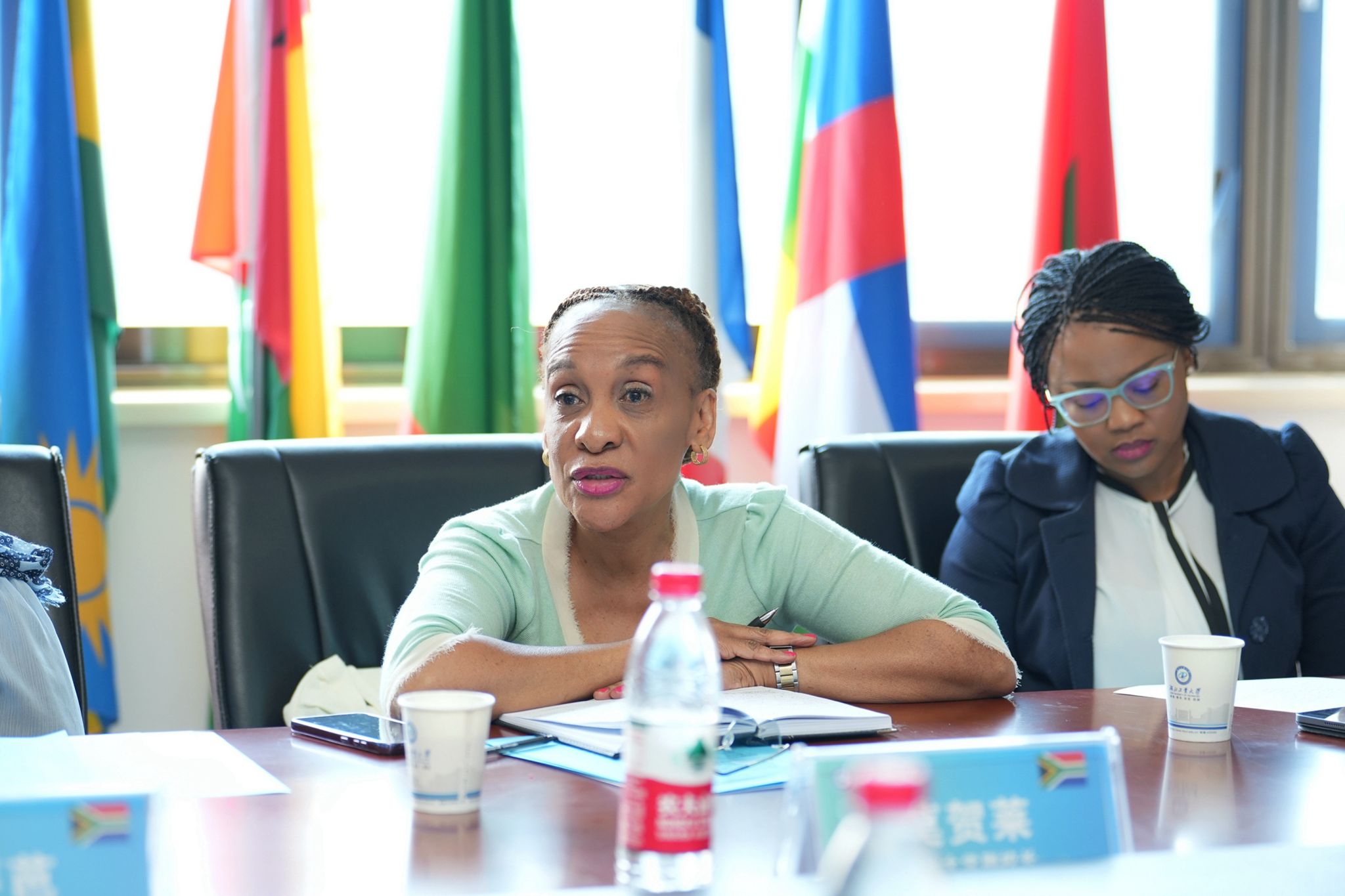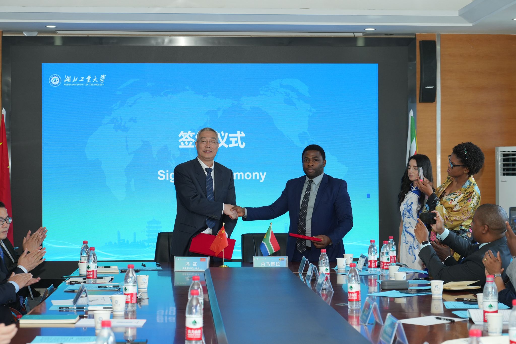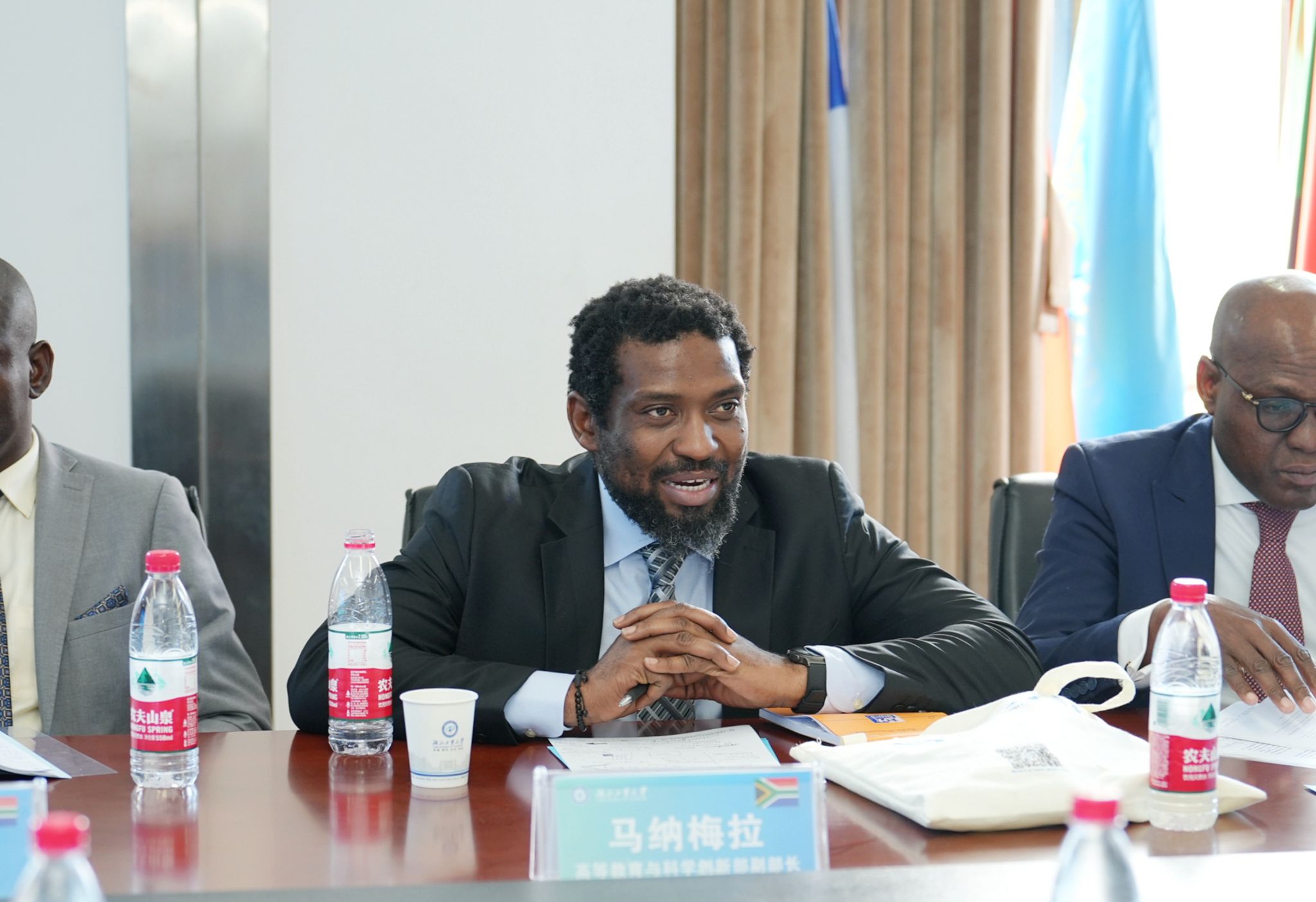 冯征对代表团一行到访表示热烈欢迎。他回顾了学校近年来的中非合作进展及2023年8月率队访问南非的相关成果,并强调,中非发展战略是我校优先发展的国际合作战略,过去几年,学校对非交流与合作务实推进,在教育及人文交流、科研合作、校企合作及中非智库建设等领域均取得了长足进展及实质性成果。他期待,学校借马纳梅拉副部长率队来访的良好契机,进一步扩大非洲合作伙伴朋友圈,联合南非更多高校、企业及政府部门,搭建一系列中非交流合作平台,促进中非经贸合作与科技创新发展,为中非携手构建新时代中非命运共同体作出新贡献。