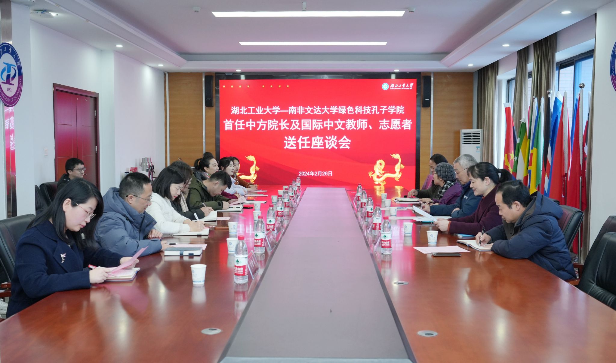 2月26日下午,学校召开南非文达大学绿色科技孔子学院首任中方院长及国际中文教师、志愿者送任座谈会。校党委副书记、校长冯征出席会议并讲话。校党委常委、组织部部长桂丽宣读中方院长聘任文件。会议由国际交流与合作处处长龙艳主持。