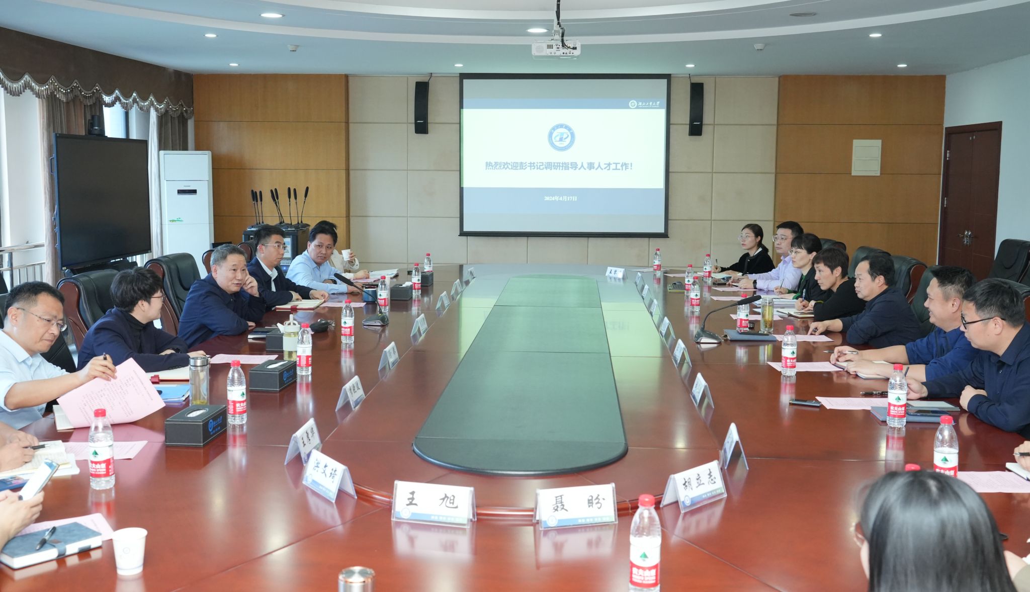 4月17日下午,校党委书记彭育园就“聚焦人才引领驱动学校一流学科建设,助力学校事业高质量发展”主题对人事处进行了深入调研指导。