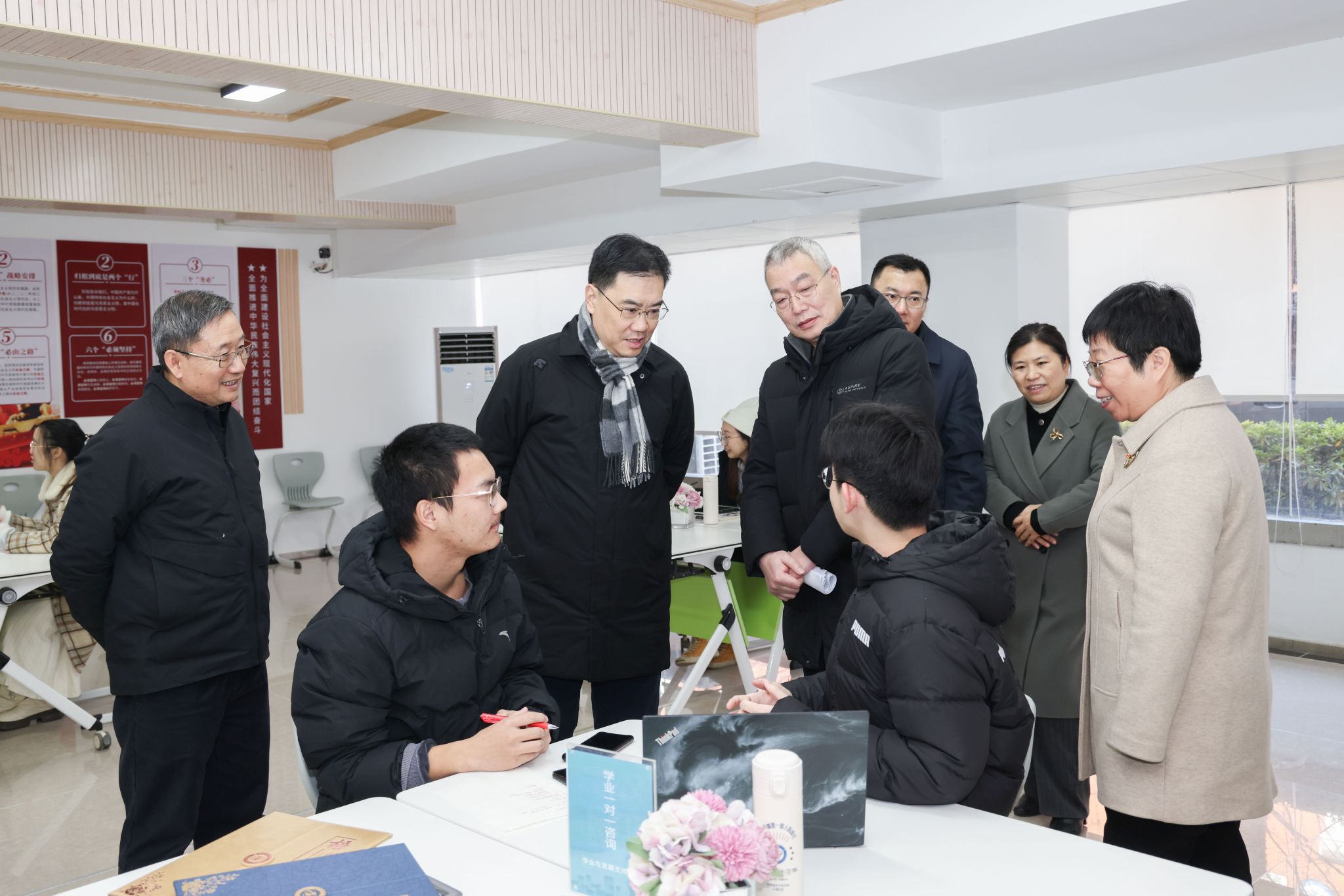 湖北工业大学是邵新宇同志高校联系点。巡考结束后,邵新宇还深入调研了芯片产业学院、科技成果转化中心和一站式学生社区等校内单位。在芯片产业学院,邵新宇详细了解了芯片设计与工艺实验中心建设情况、实践教学流程和人才培养模式。在科技成果转化中心,邵新宇详细听取学校科技创新、成果转化、赋权改革等工作情况与进展,对学校长期坚持“立足湖北、服务工业”取得系列成果表示赞赏。在一站式学生社区服务中心,邵新宇详细了解了社区运维模式和育人成效,充分肯定学校积极探索育人体系建设的举措,并与社区里正在进行朋辈学业咨询的学生亲切交谈,鼓励同学们精进专业学习,提升综合素质,以奋斗成就出彩人生,为国家发展贡献青春力量。在经济与管理学院一站式学生驿站,得知学院今年先后成立了萧栋栋党支部、萧栋栋创新班后,邵新宇肯定了学院探索创新党建工作,鼓励师生继续传承萧栋栋精神,不断进取向上。
