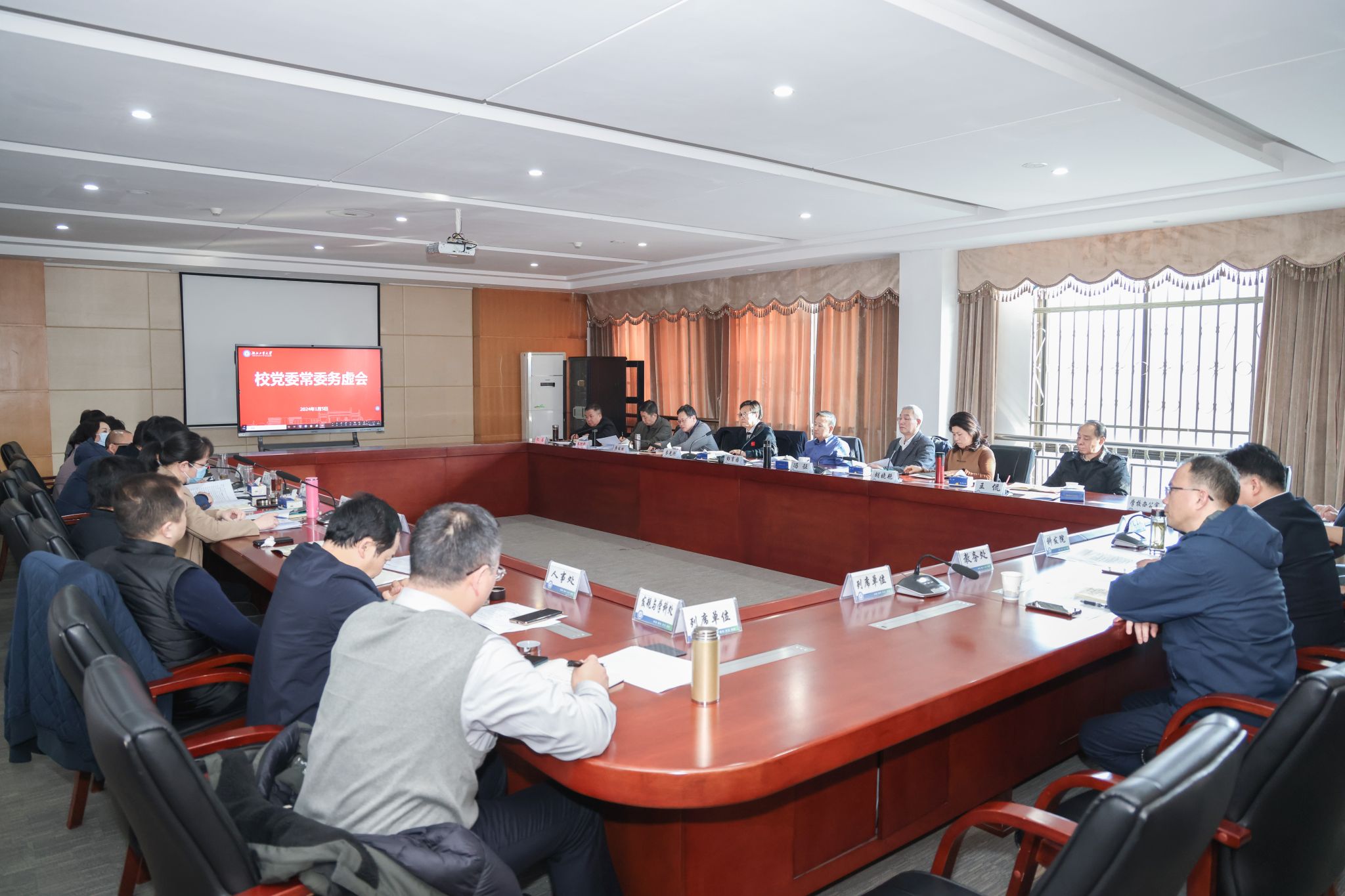 1月5日,校党委书记彭育园主持召开党委领导班子务虚会,听取重点工作汇报,研究谋划学校发展。校党委全体班子成员参加会议,相关部门负责同志列席会议。