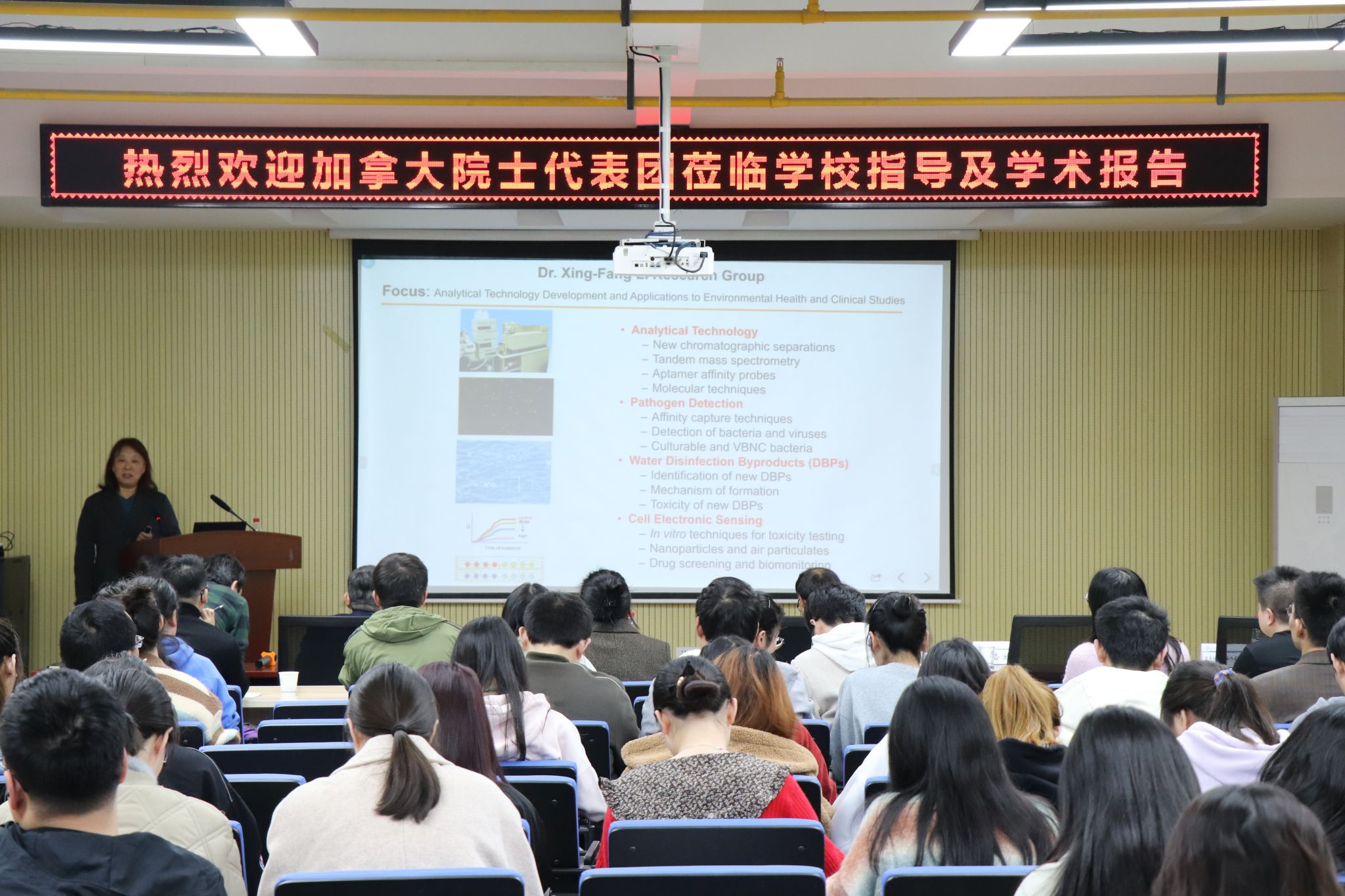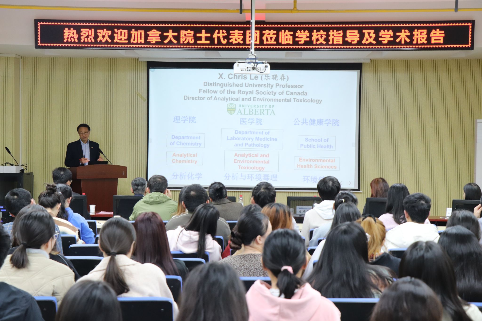 11月22日下午,加拿大皇家科学院院士、阿尔伯塔大学教授乐晓春、李杏芳两位院士等一行三人莅临我校指导及学术报告。校党委书记彭育园,校党委常委、副校长陈自才陪同交流。