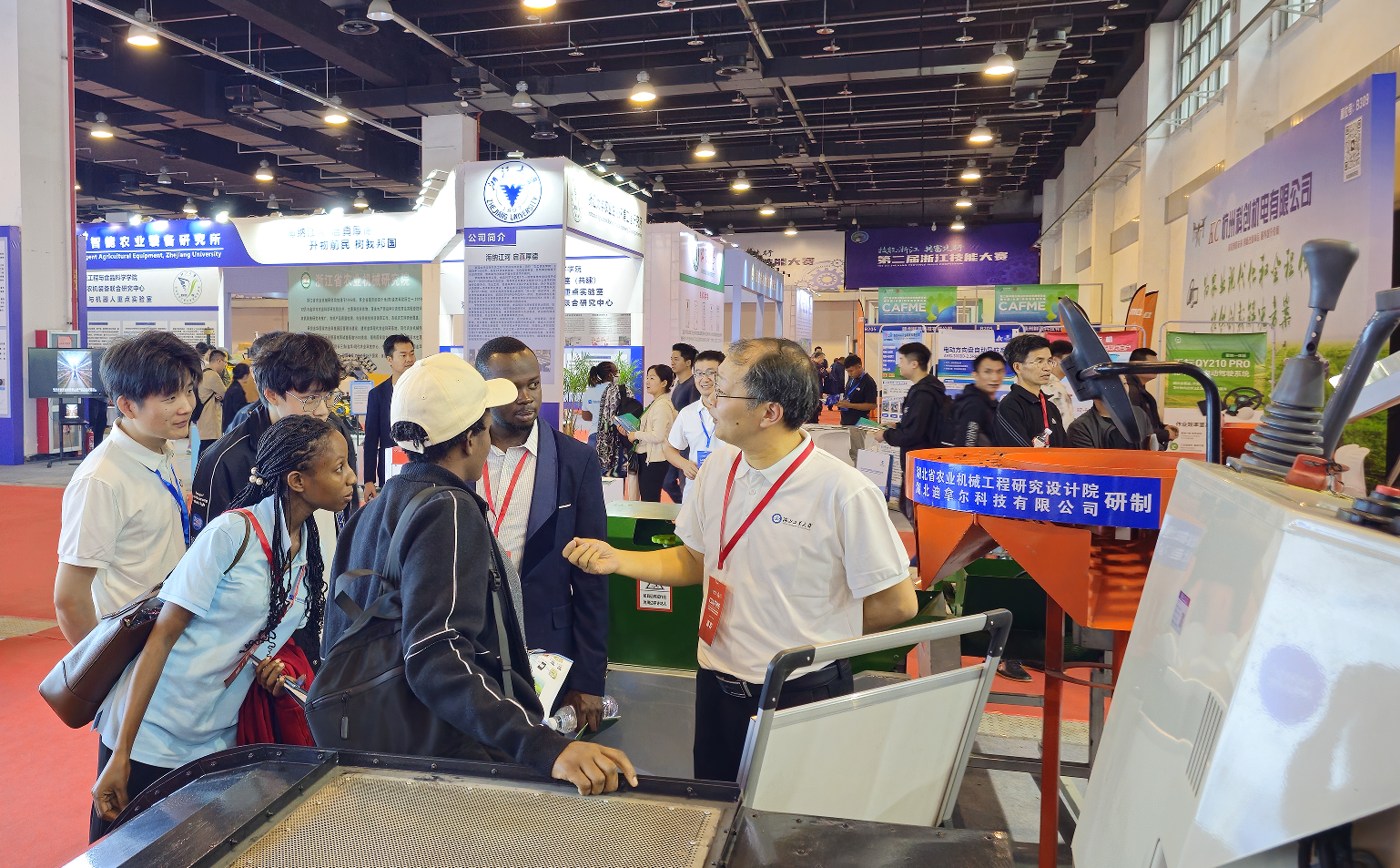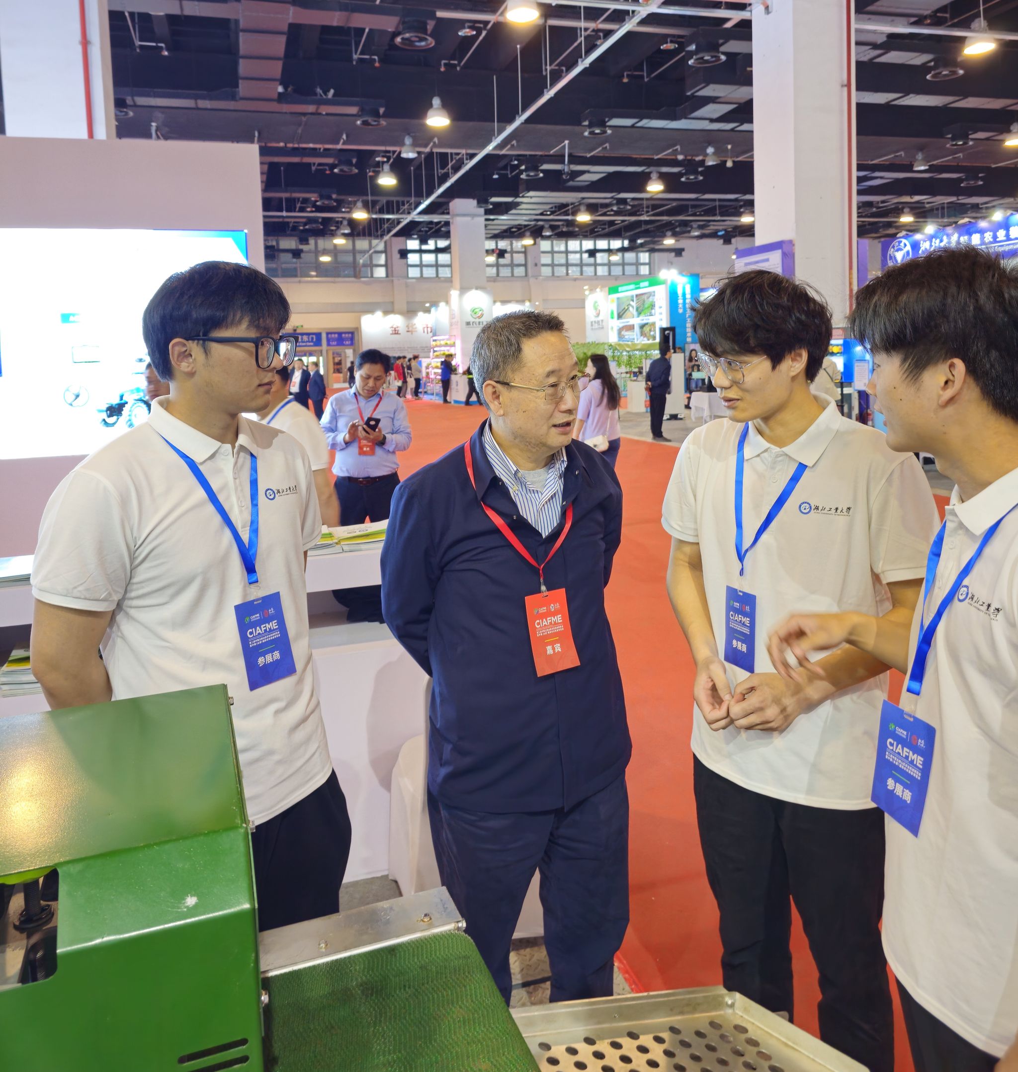 陈学庚、苑严伟、Dares kittiyopas(泰国农业工程学会主席)等专家饶有兴致地来到农机院展台与参展师生深入交流,充分肯定了艾草鲜叶收获机、油茶果揉搓破壳机、迷你型鳝鳅剖切机等农机装备的技术水平及成效。参展农机也得到了湖北省农业农村厅、省农业事业发展中心、省农机推广站、省农机公司、省农投公司有关领导的赞赏,获得农户、合作社及消费者的高度关注与好评。