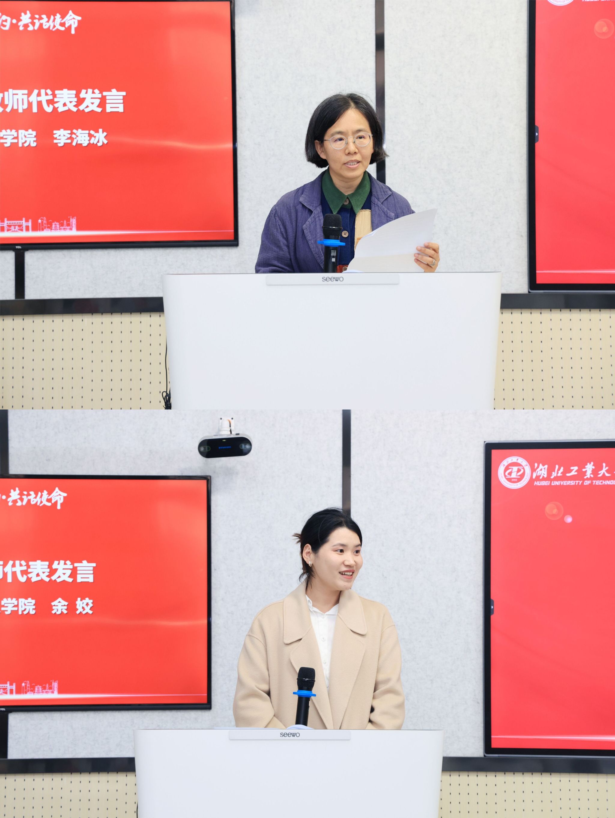 艺术设计学院李海冰代表获奖教师作经验交流,讲述了自己从教以来的成长、收获和感悟;马克思主义学院余姣代表青年教师表示,要向优秀的前辈们看齐,不断努力提升教书育人本领,希望有朝一日,也能够像前辈们一样成为受学生喜爱的好老师。