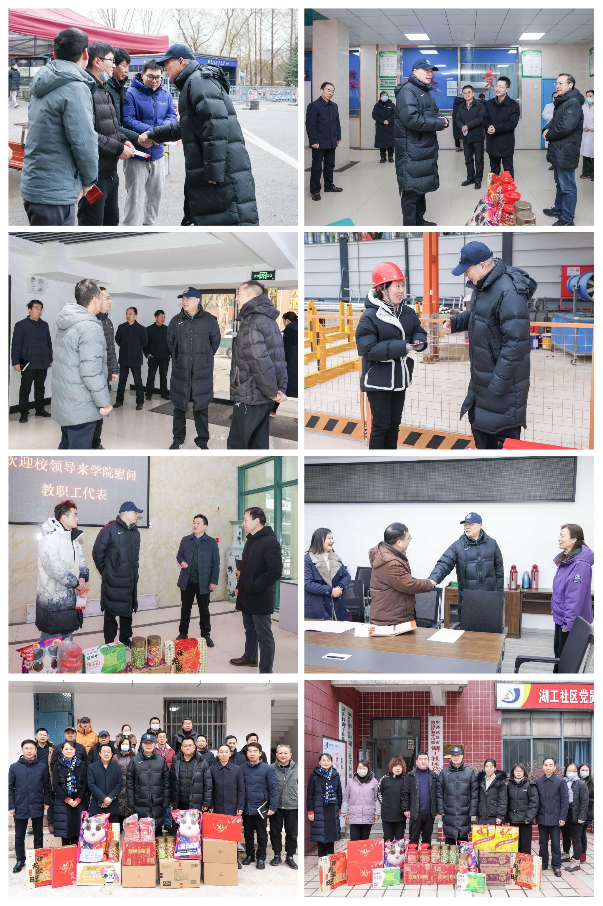 1月18日至22日,校党委书记彭育园、校长冯征,校党委常委、组织部长桂丽带队深入基层一线,走访了机械工程学院、土木建筑与环境学院、马克思主义学院、保卫处、校医院、学生宿舍管理中心、饮食服务管理中心、研究生公寓工地、湖工社区等,向坚守岗位的党员代表和一线教职工送上了节日的问候和新春的祝福。