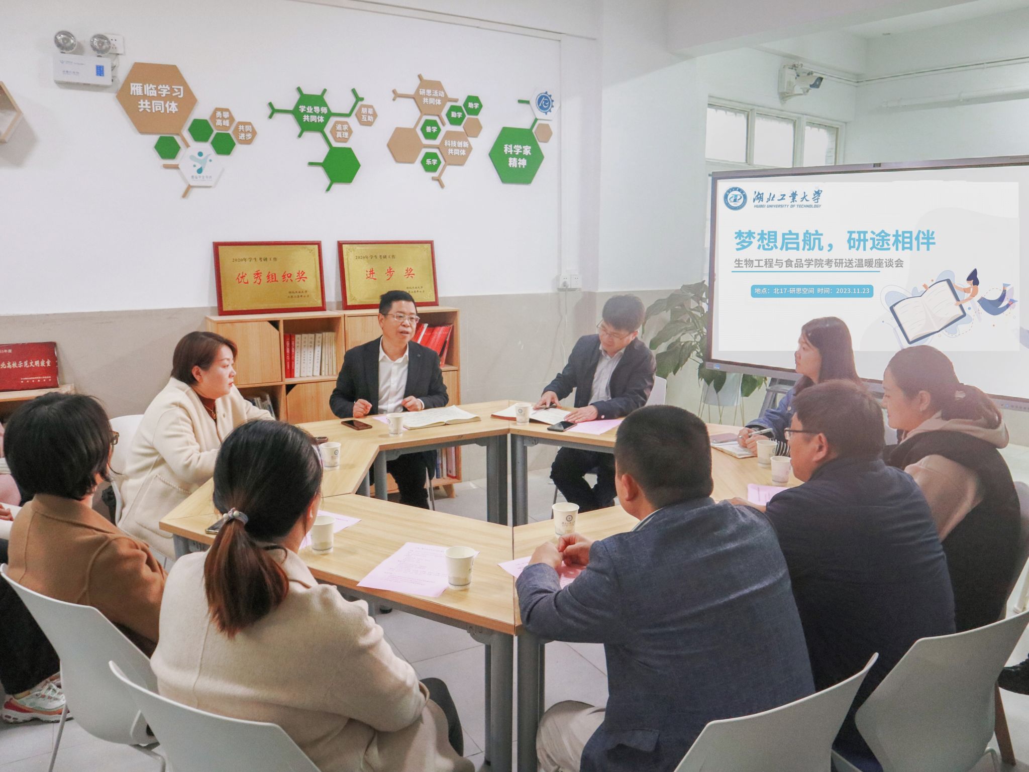 在2024年全国硕士研究生招生考试即将来临之际,为增强考研信心,助力学生上岸,11月23日下午,校党委常委、副校长陈自才来到北17栋一站式学生社区,为生食学院学生送上考研祝福和好运福袋。学院班子成员、毕业班及研究生辅导员、班导师和考研学生代表参加此次活动。
