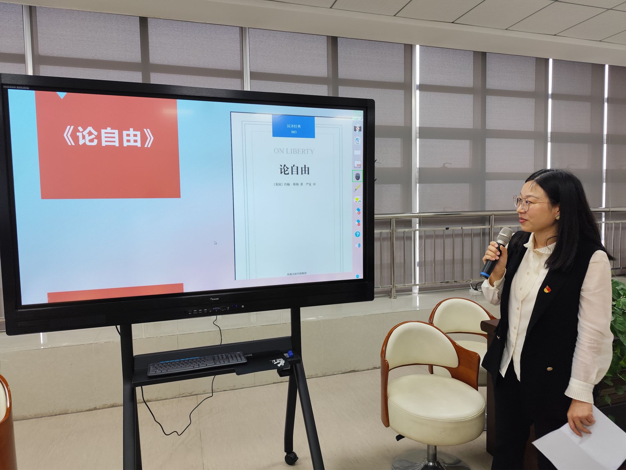 随后,辅导员刘雪姣点评同学们的分享。还从学术背景、核心思想、研究思路、重要论述和研究应用五个方面为同学们解读了约翰•穆著的《论自由》。