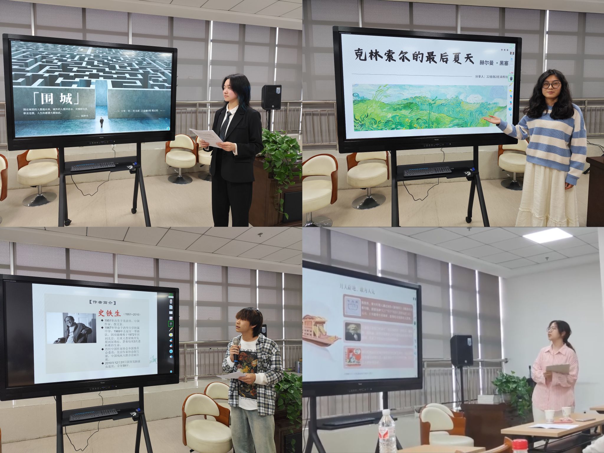 分享会上,23金融4班张益玮分享了史铁生的《我与地坛》,以此鼓励同学们要勇敢面对生活的挫折;22金融4班田佳宜通过讲述《觉醒年代》,带领同学们重温追求真理、燃烧理想的澎湃岁月等。