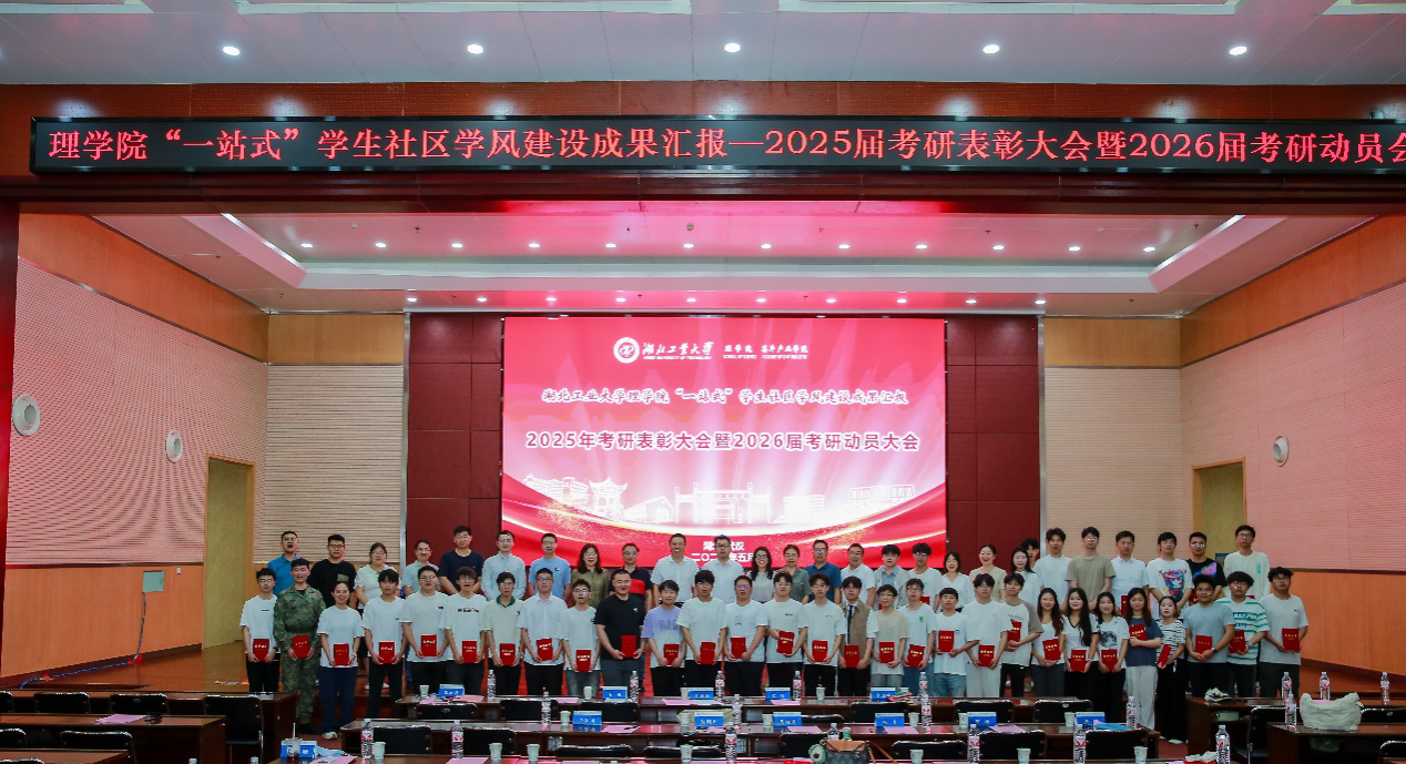 5月28日下午,理学院在图书馆报告厅举行“一站式”学生社区学风建设成果汇报——2025届考研表彰大会暨2026届考研动员大会。校党委常委李政颖,学院领导班子成员,学生工作部辅导员素质发展中心主任李璟璐、系部书记、主任,班导师和学生代表出席大会,会议由学院党委副书记陈彦君主持。