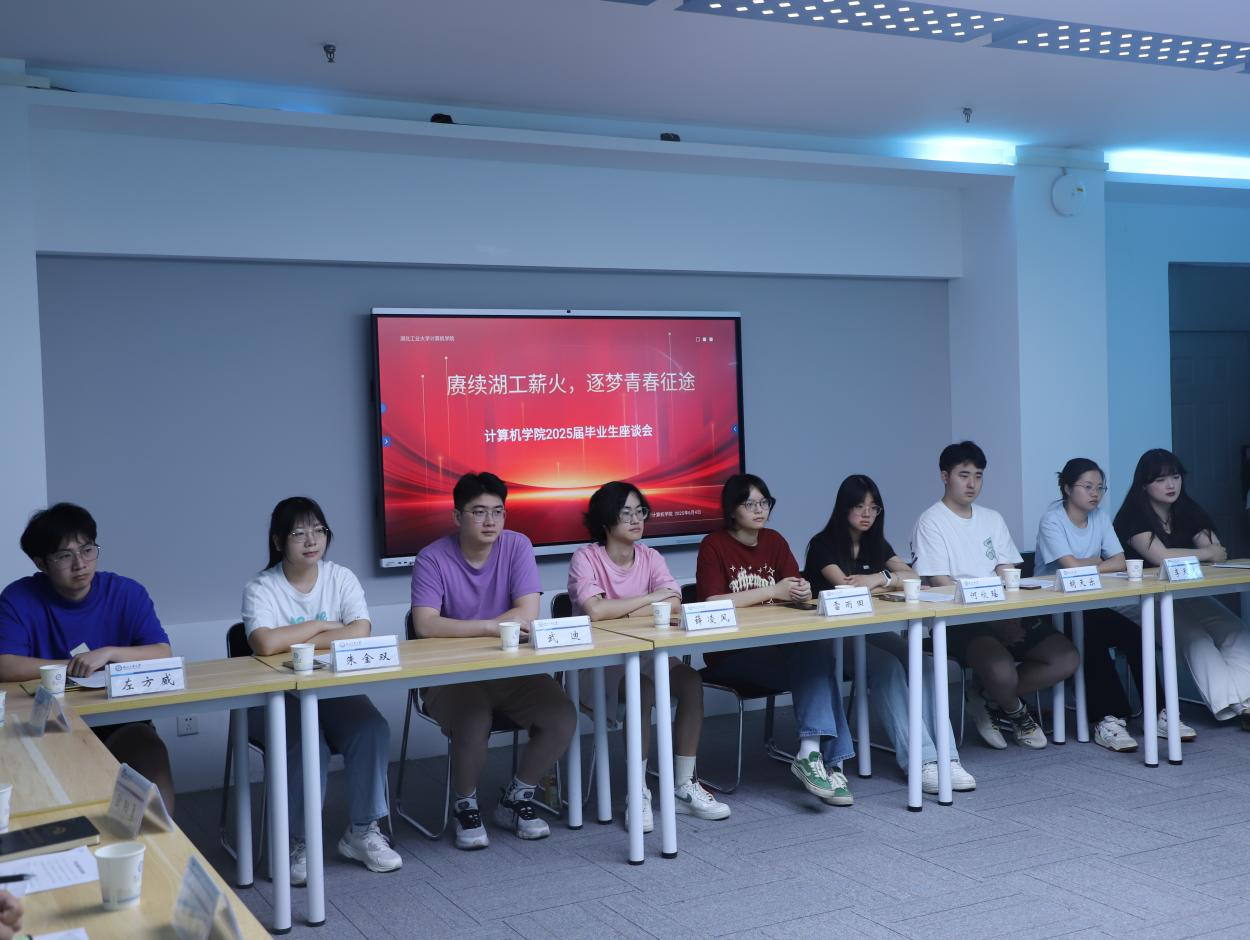 6月4日下午,计算机学院2025届毕业生座谈会在实训楼五楼A5-7会议室举行。校党委副书记胡晓艳与12名本硕毕业生代表齐聚一堂,共叙在校学习生活的感悟与收获,畅谈未来发展规划。院领导班子、各系部相关负责人、专业负责人、教师代表及年级辅导员共同参会。