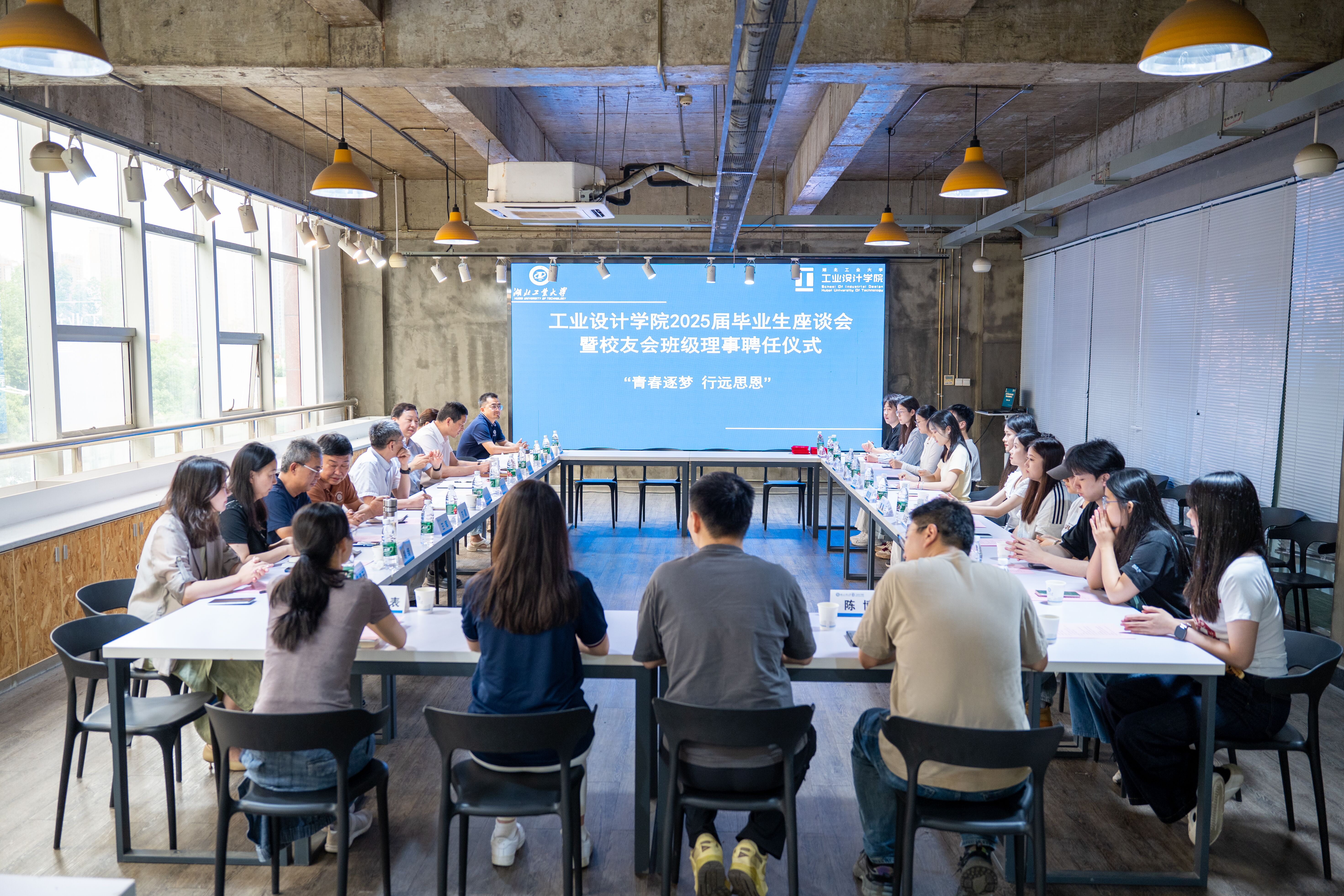 6月10日下午,工业设计学院举行以“青春逐梦 行远思恩”为主题的2025届毕业生座谈会暨校友理事聘任仪式。学院领导班子成员,各系主任、班导师、教师代表及毕业生代表出席活动。院党委副书记侯国强主持座谈会。
